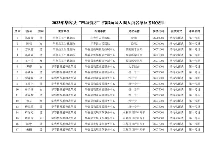 2023年华容县“四海揽才”招聘面试入围人员名单及考场安排.xlsx