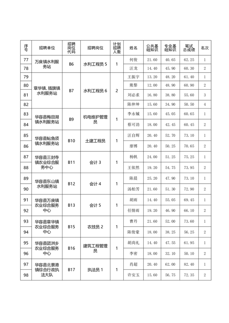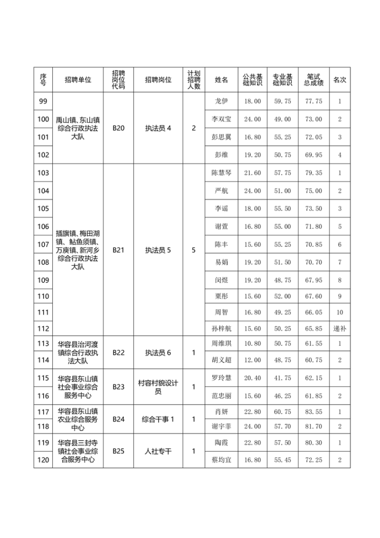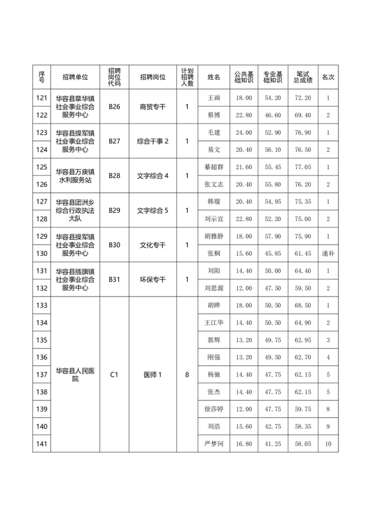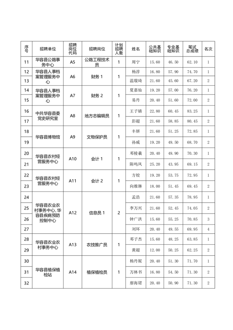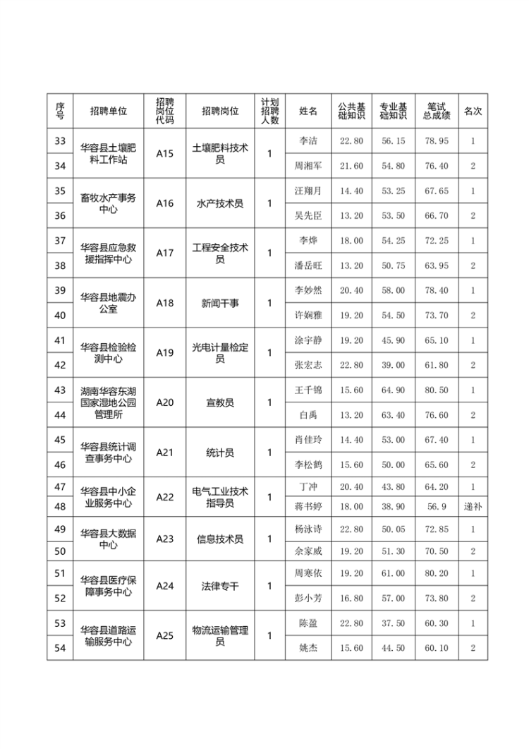 2023年华容县事业单位公开招聘工作人员面试入围人员及递补人员名单