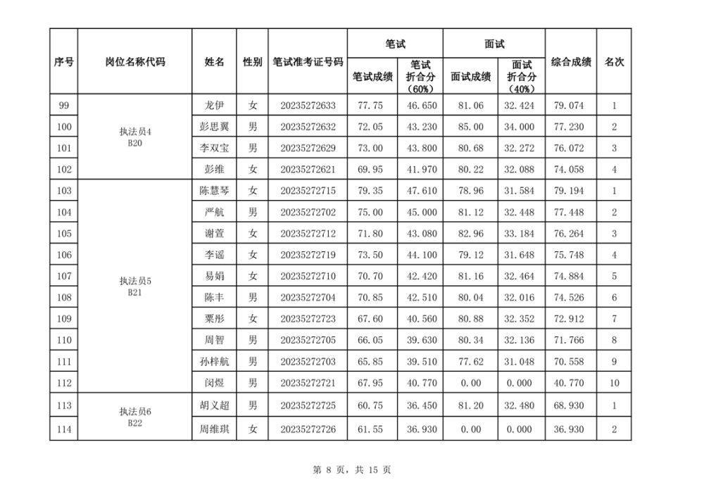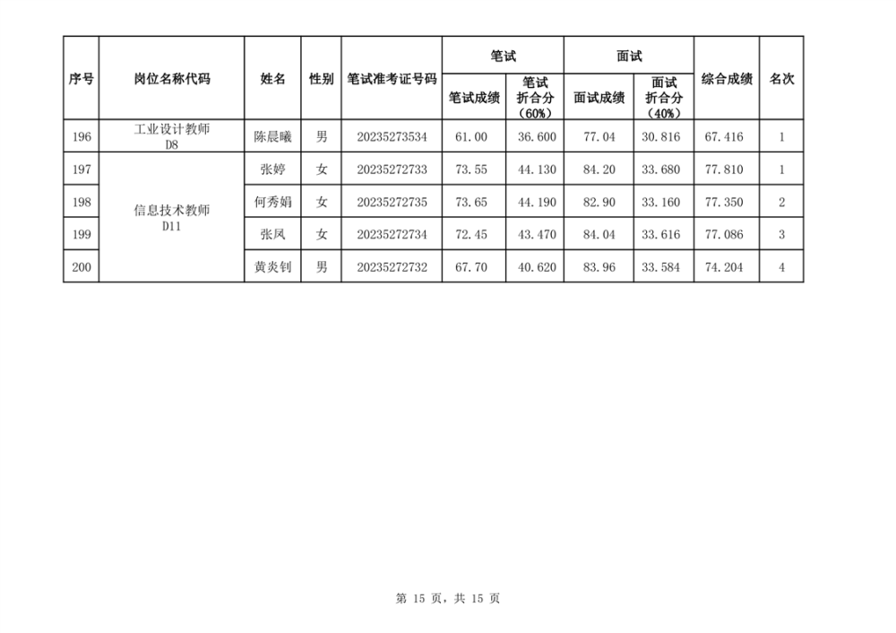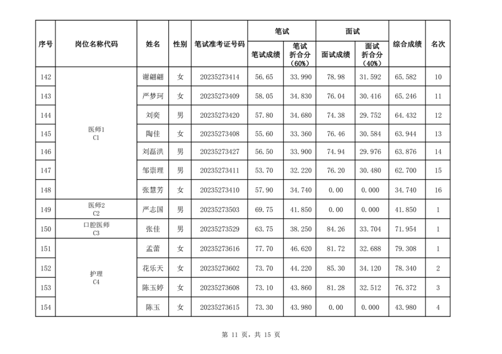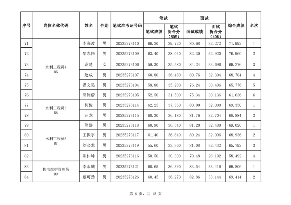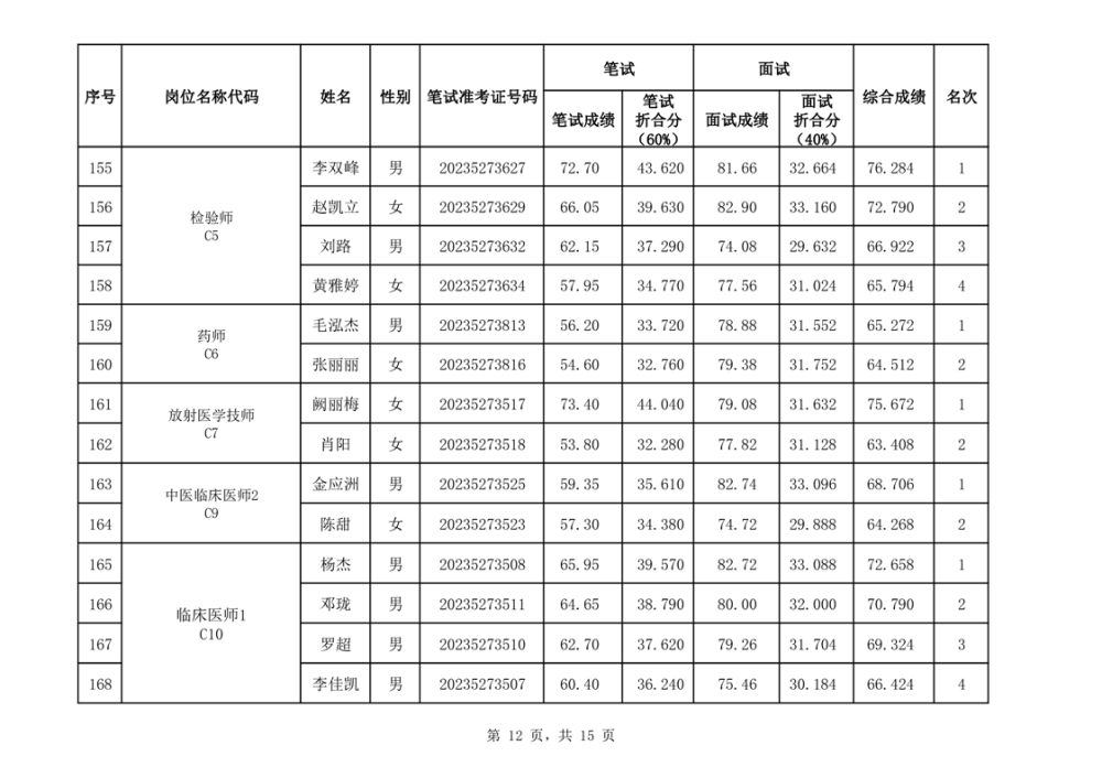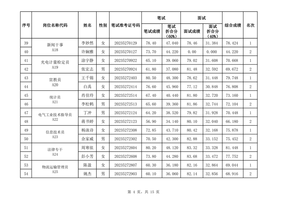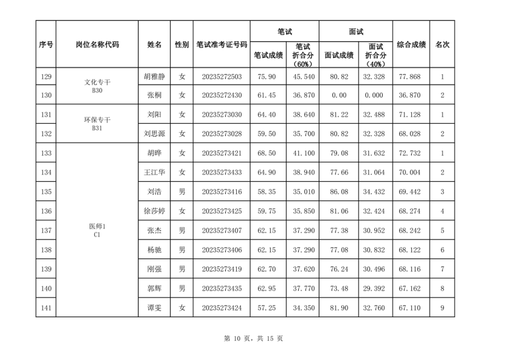 华容县2023年事业单位公开招聘工作人员面试最低合格分数线与综合成绩公示