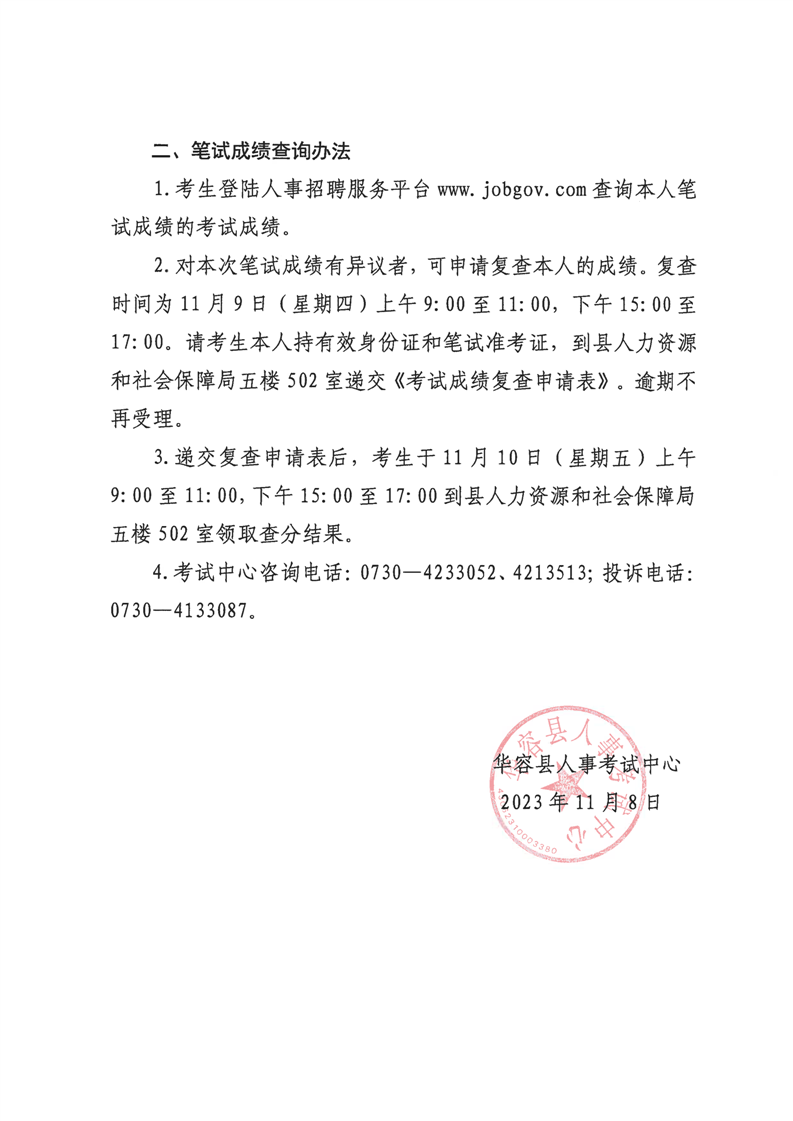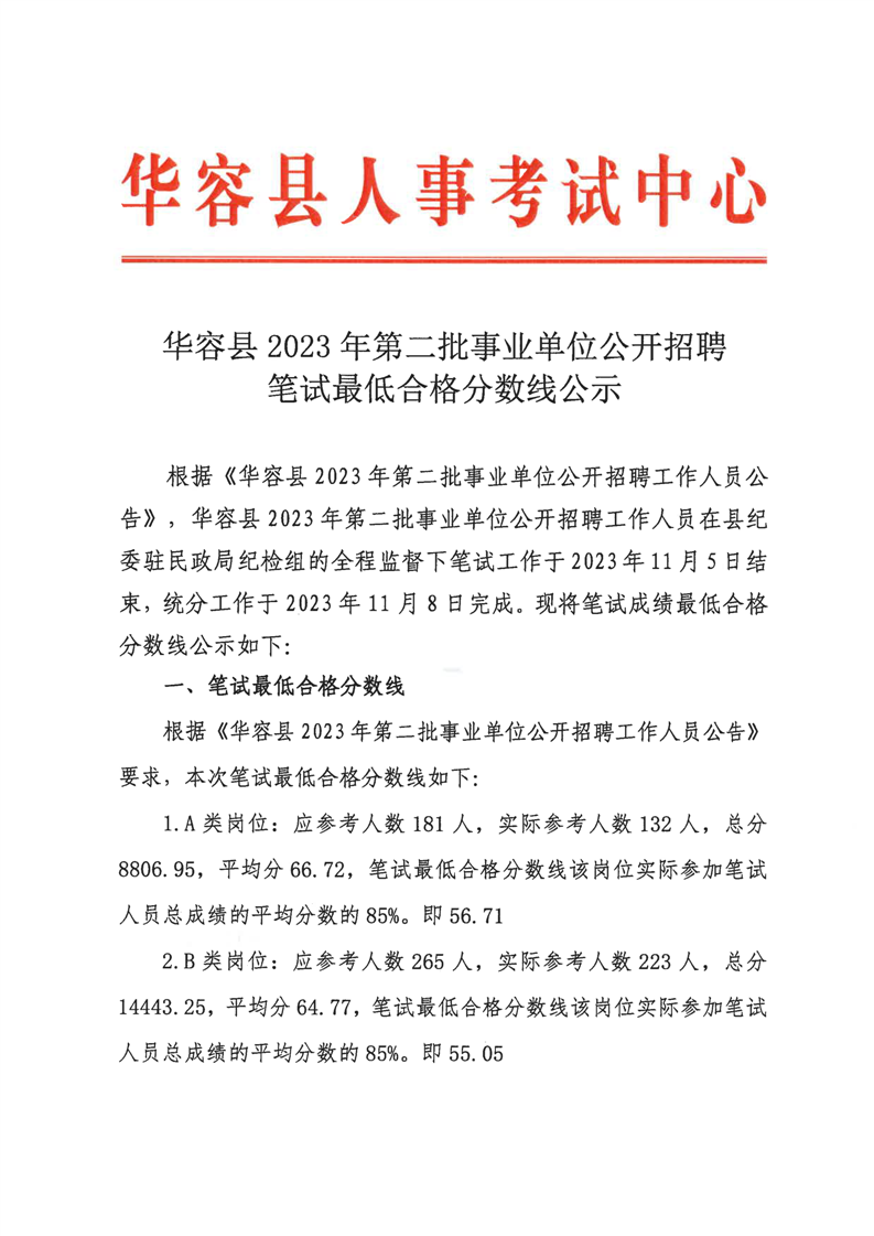 华容县2023年第二批事业单位公开招聘笔试最低合格分数线公示