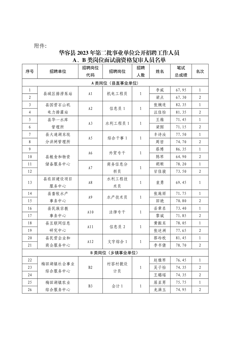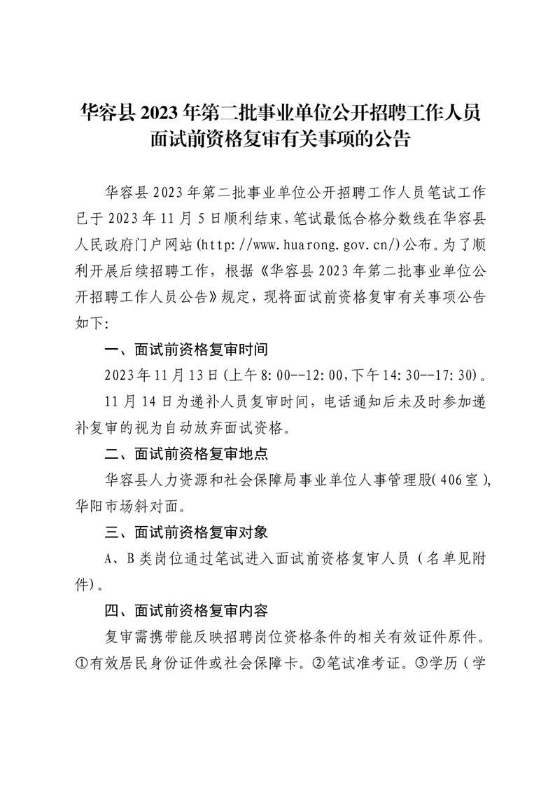 华容县2023年第二批事业单位公开招聘工作人员面试前资格复审有关事项的公告