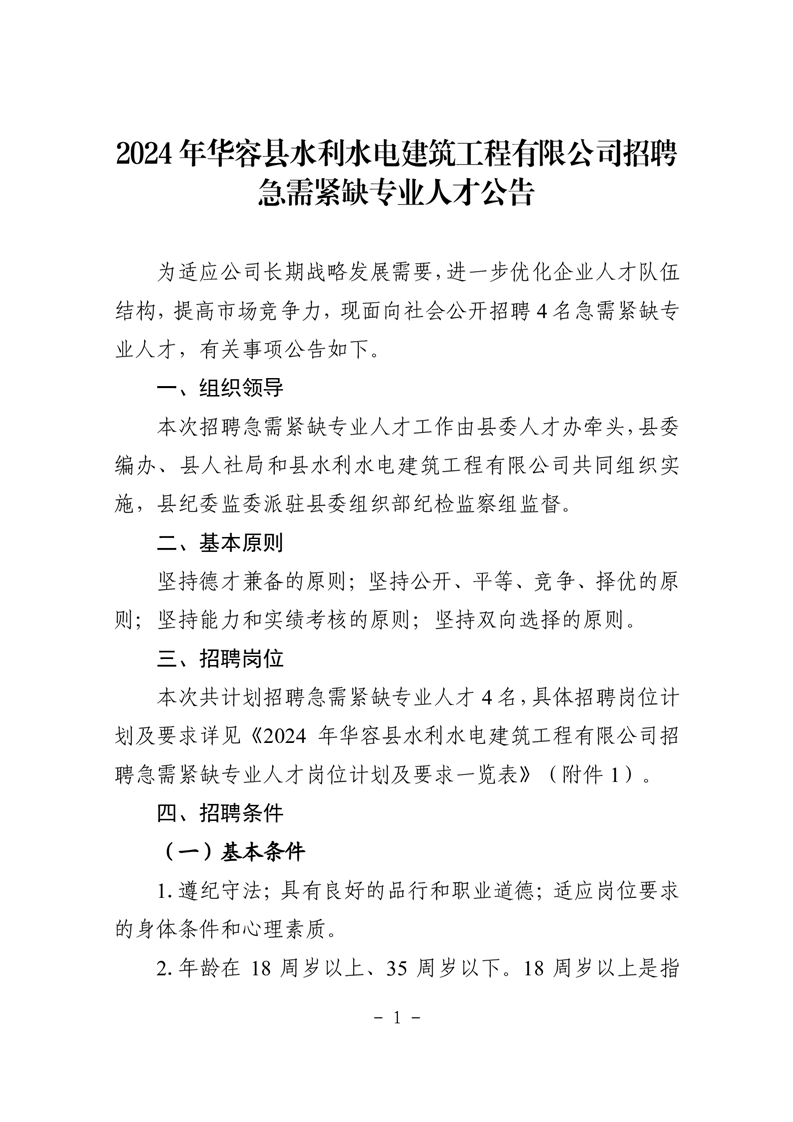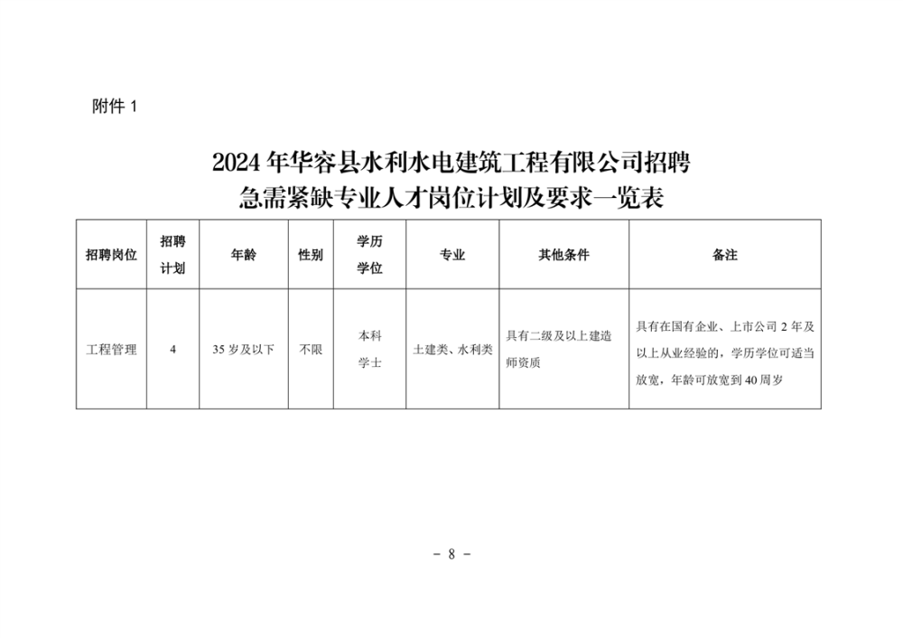 华容县水利水电建筑工程有限公司招聘急需紧缺专业人才公告
