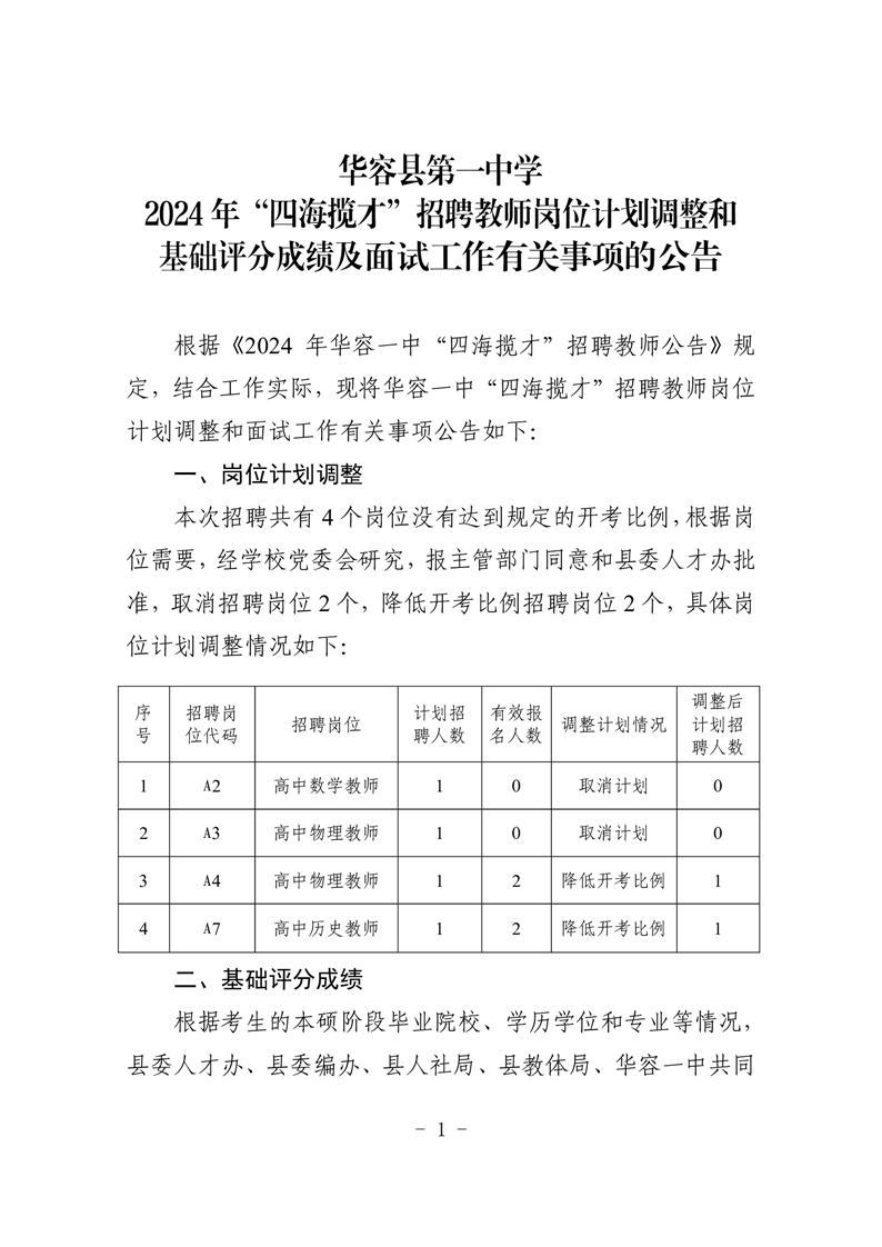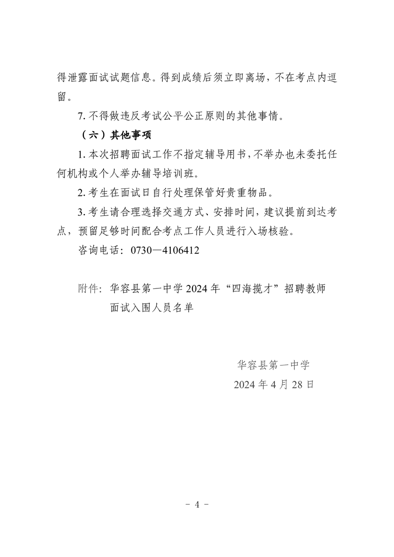 华容县第一中学2024年四海揽才招聘教师有关事项的公告