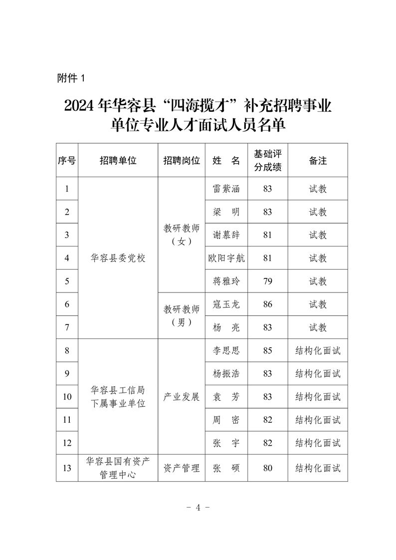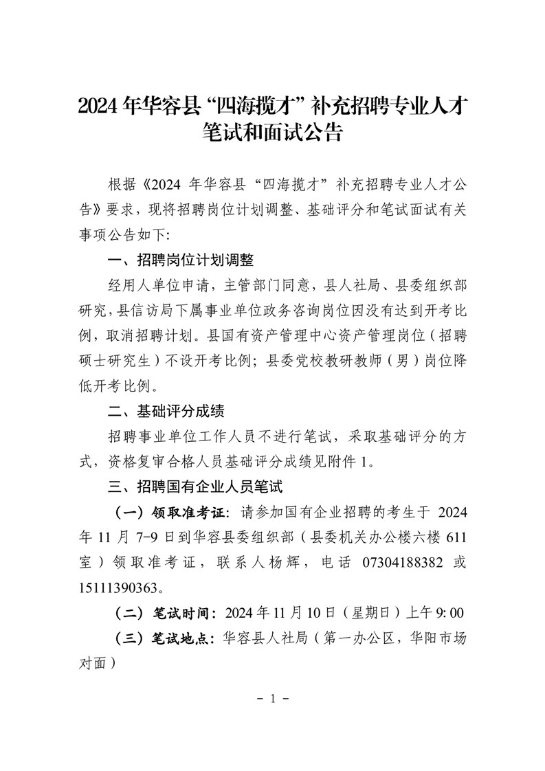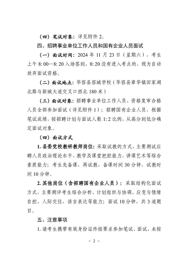 2024年华容县“四海揽才”补充招聘专业人才笔试和面试公告