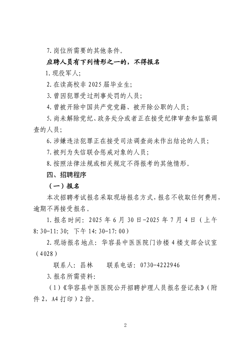 附件1:华容县中医医院公开招聘护理人员计划表.docx