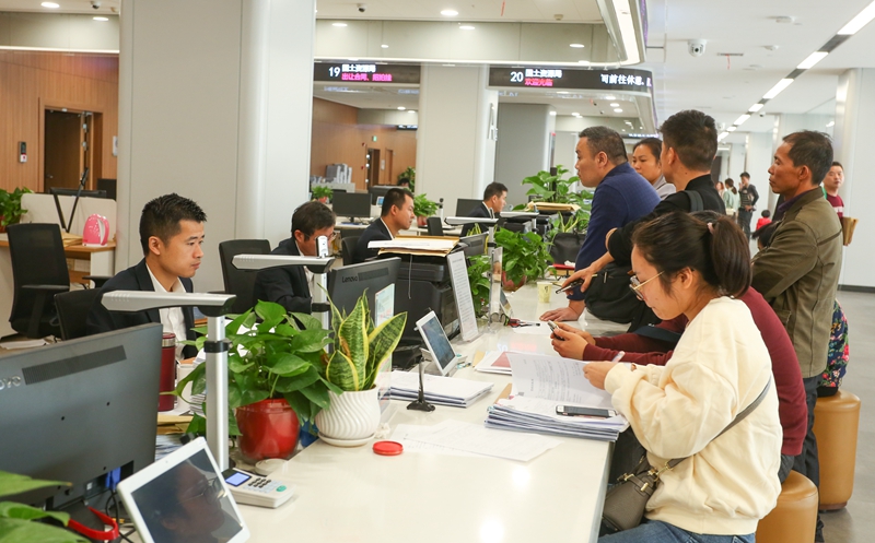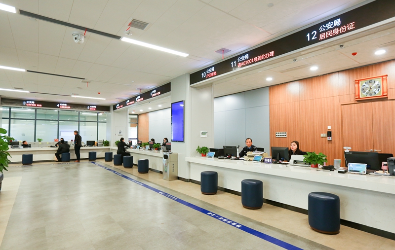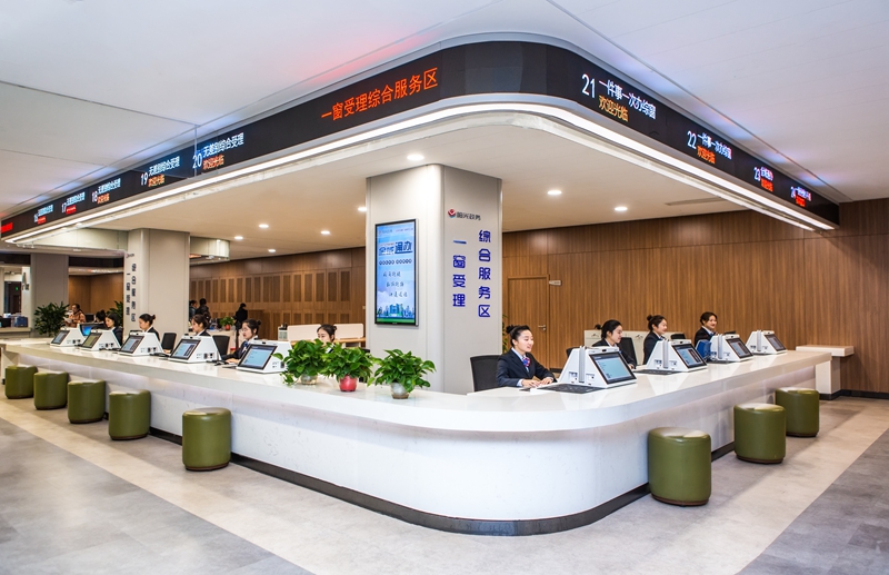 政务服务中心服务大厅设置前台239个、后台办公室88间,可进驻工作人员约400余人,为政务服务“三集中三到位”的实现提供了基础条件。为做到便民利民的同时实现窗口功能最大化,政务服务中心在安排窗口时,充分考虑相关联的业务和相互支撑的业务整合单独设区,或设在邻近位置,如商事登记服务区、建设项目联合审批区、财税综合服务区、社会事务服务区等,为群众办件“最多跑一次”提供便利条件。部分事项少、发生率低、人员紧缺的部门,政务中心则将这些部门安排进综合窗口,充分保证了窗口作用的最大化。针对群众最关心的不动产登记这个事项,政务中心合理设置了国土、税务、财政、房产等窗口,形成“一条龙”服务,为不动产“最多跑一次”打下坚实基础。