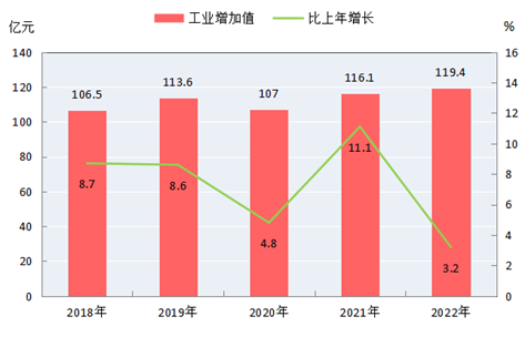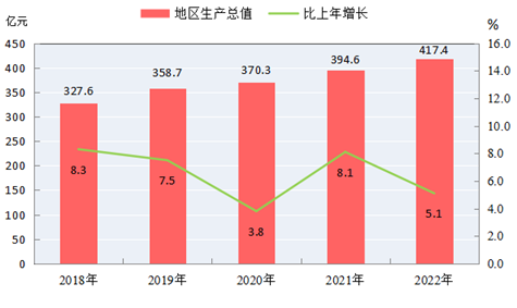 图1 2018-2022年地区生产总值及其增长速度[3]