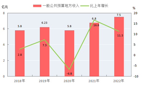 图10 2018-2022年一般公共预算地方收入及其增长速度