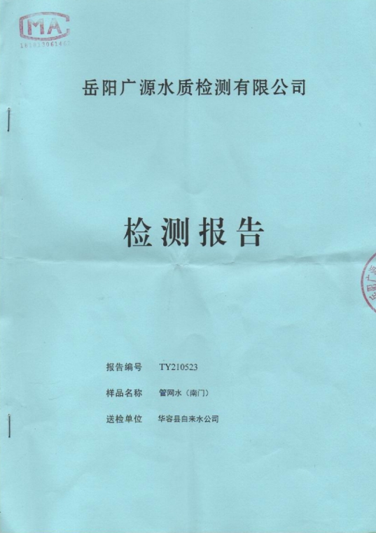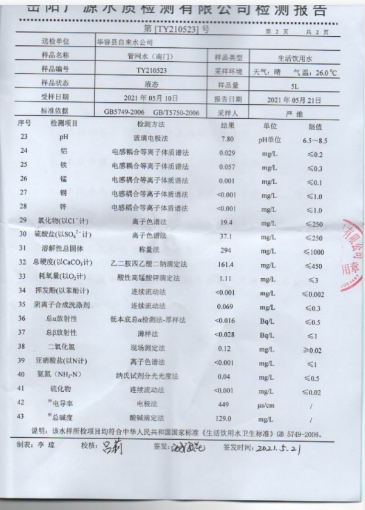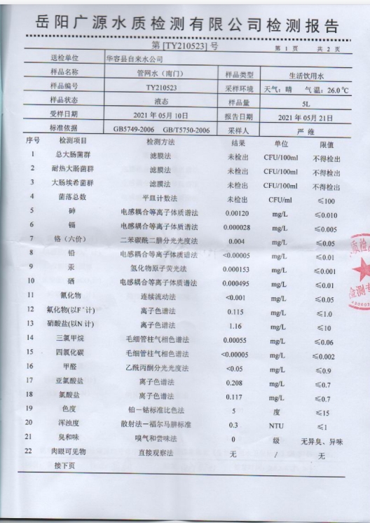 2021年水质检测报告(管网水 南门)