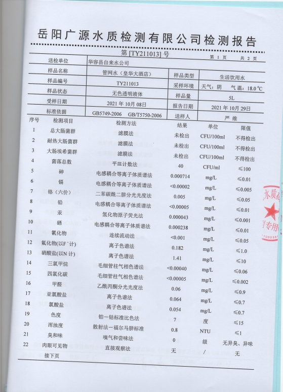 2021年10月水质检测报告(管网水)