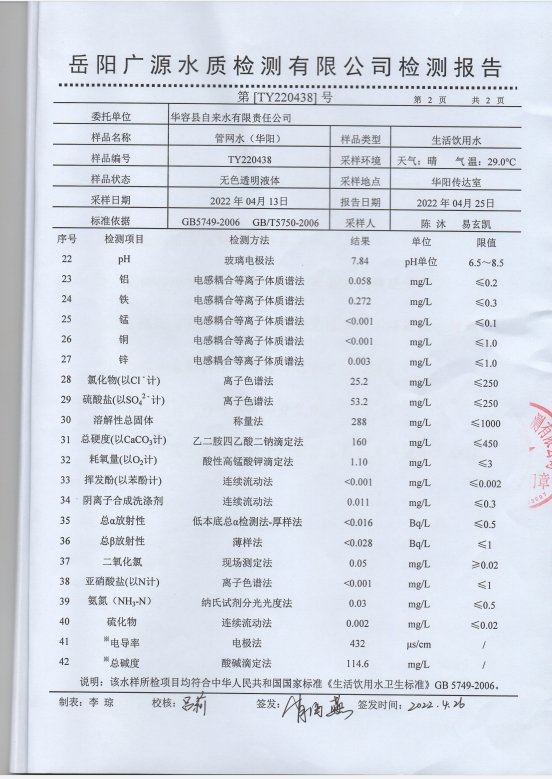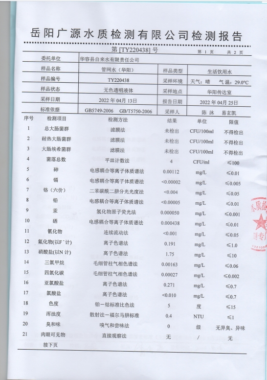 2022年4月水质检测报告(管网水)