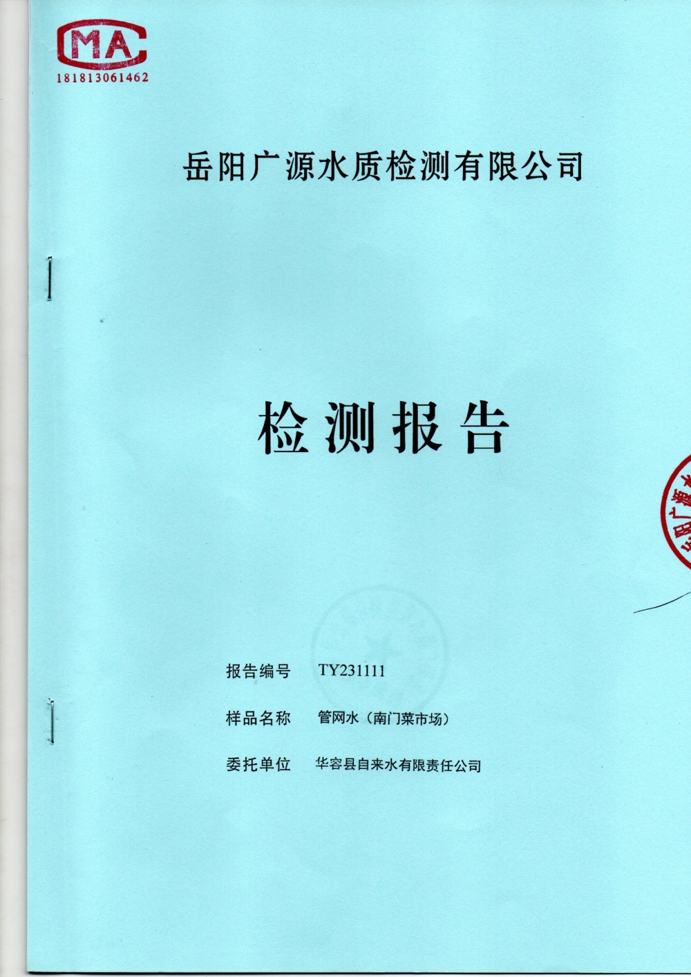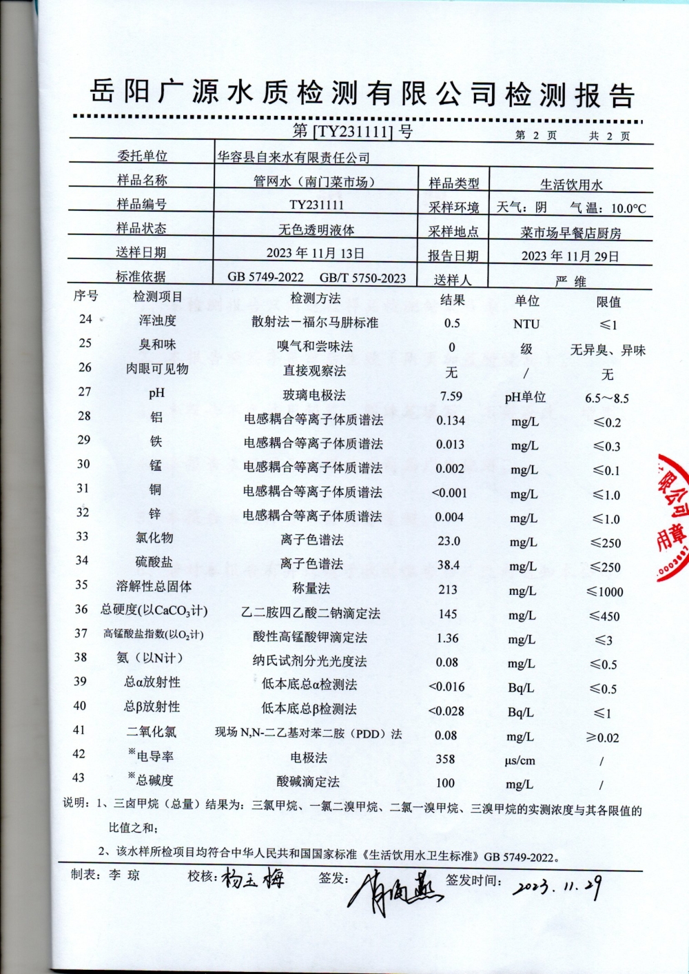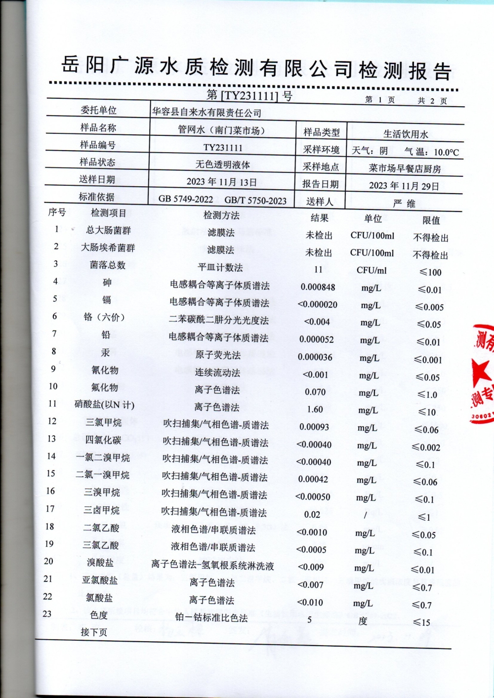 2023年11月水质检测报告(管网水)