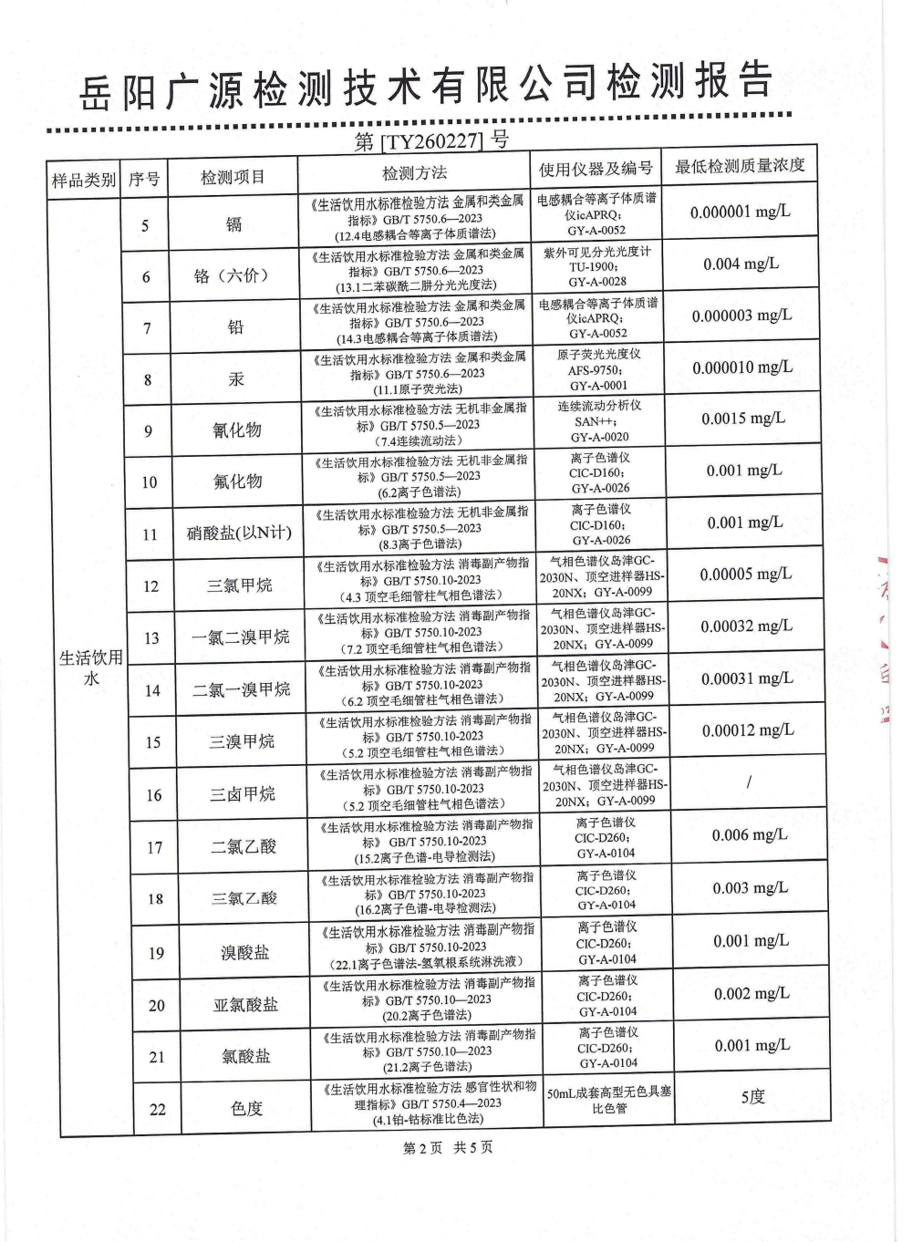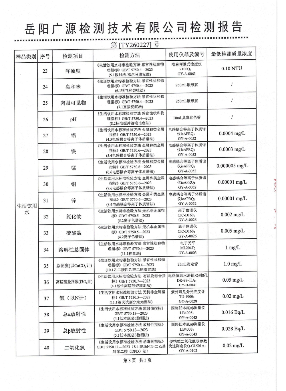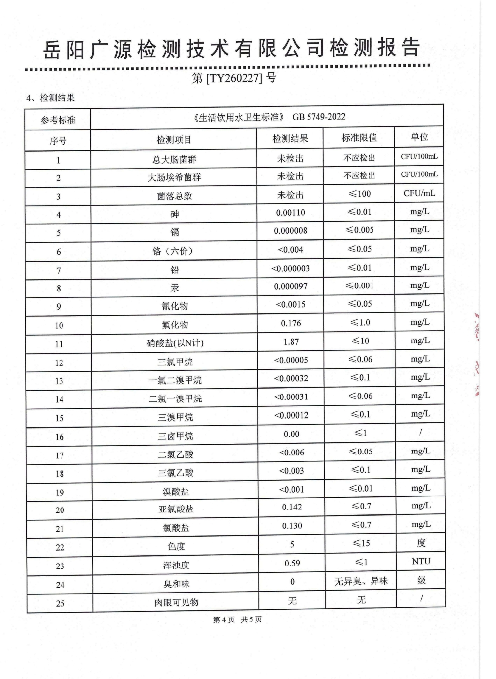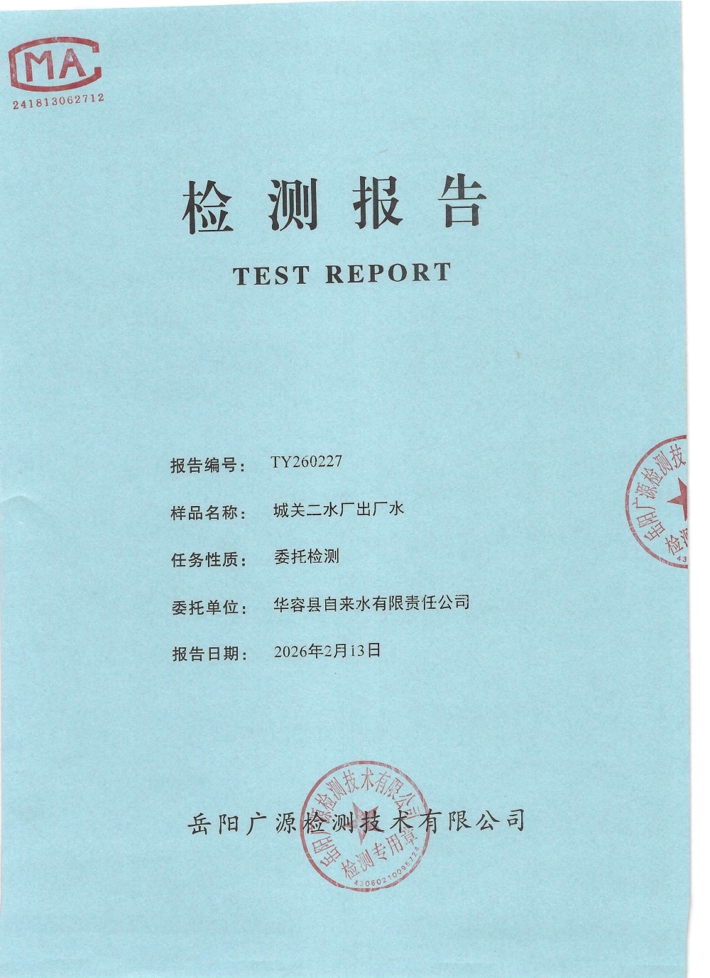 2026年2月水质来样检测报告(出厂水)