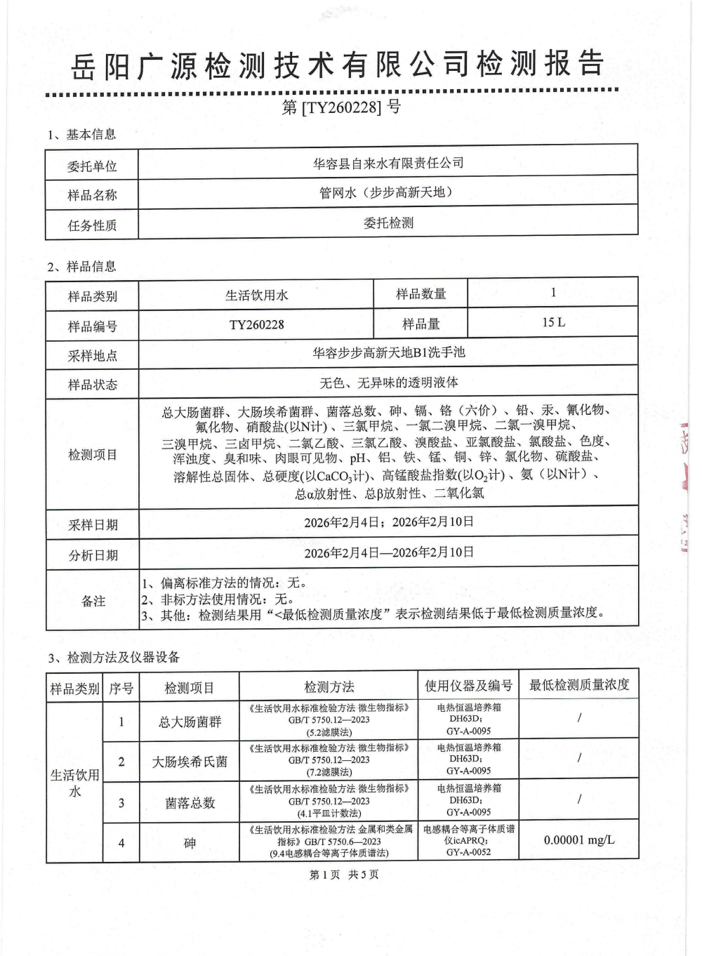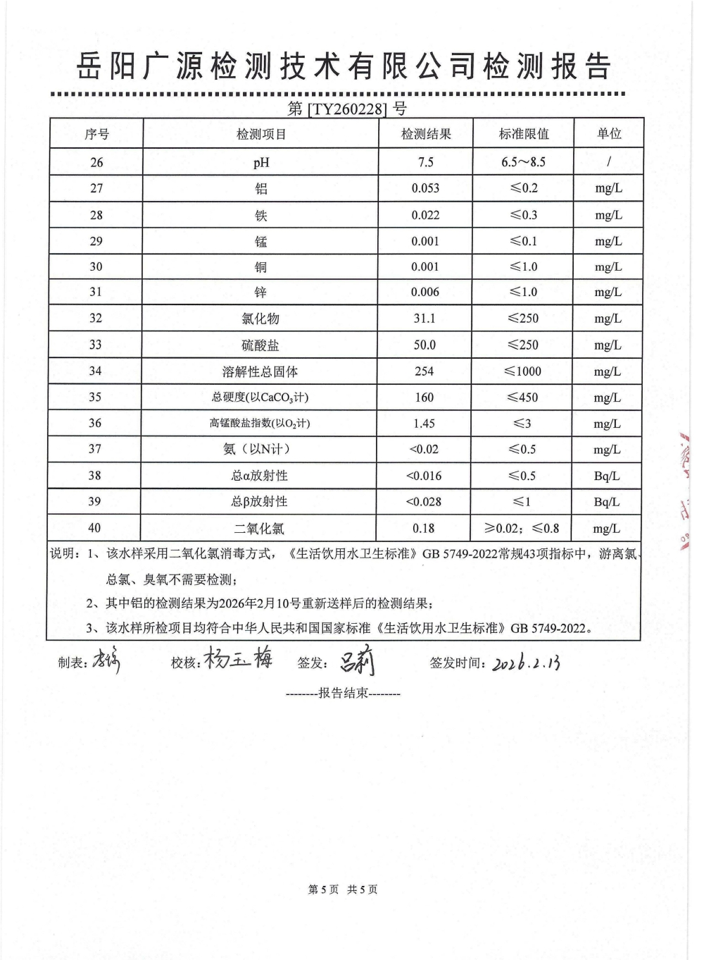 2026年2月水质来样检测报告(管网水)