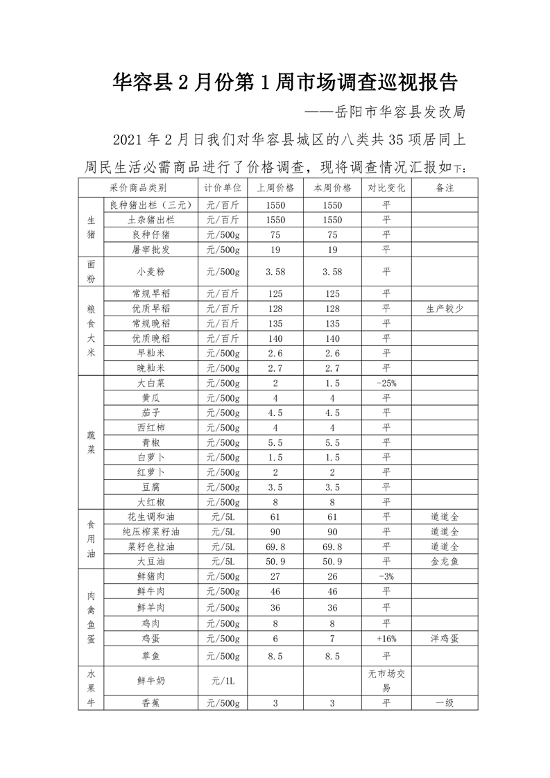 华容县2021年2月份第1周市场调查巡视报告