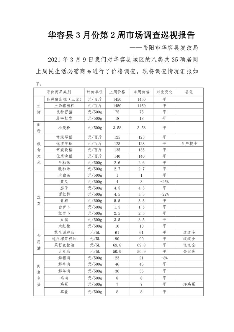 华容县2021年3月份第2周市场调查巡视报告