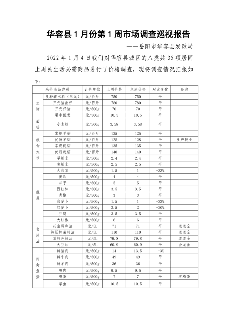 华容县2022年1月份第1周市场调查巡视报告