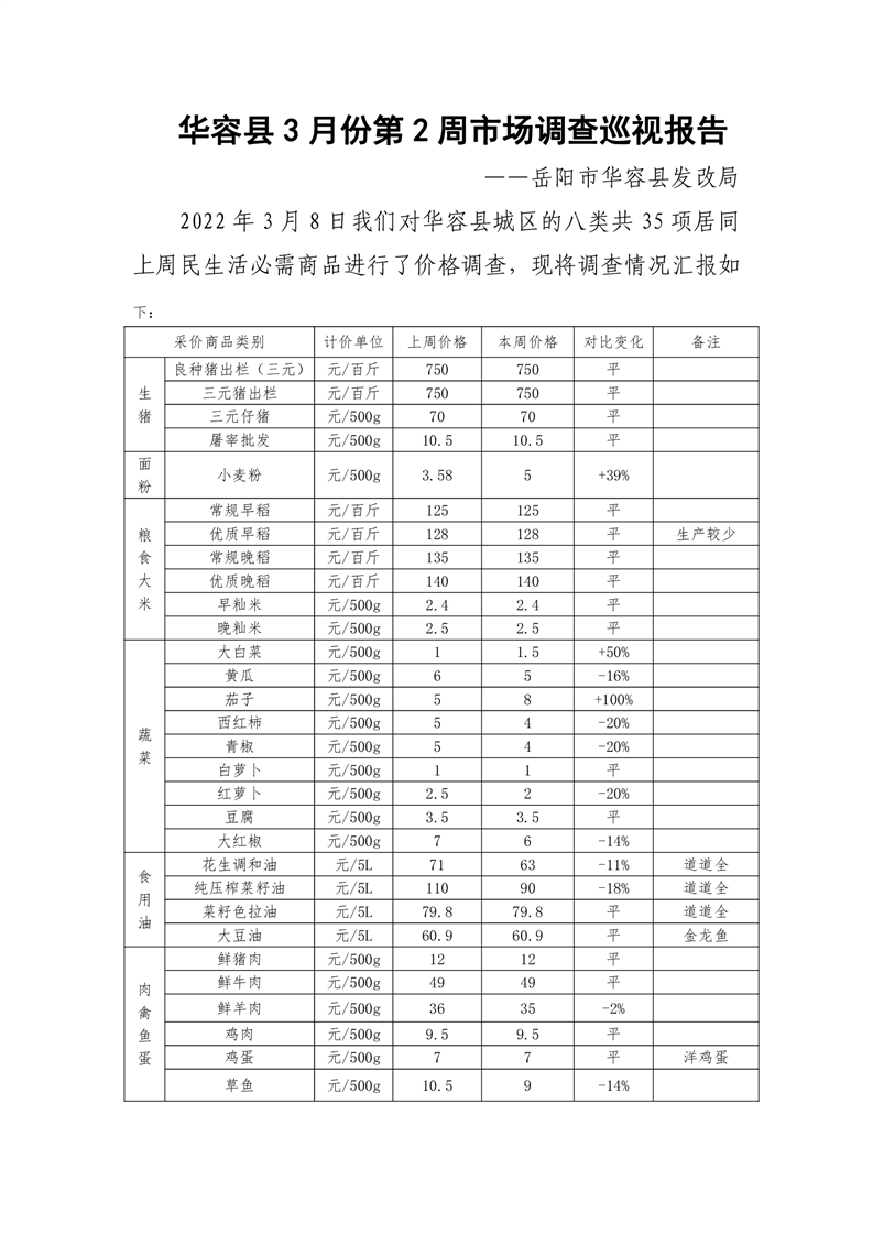 华容县2022年3月份第2周市场调查巡视报告