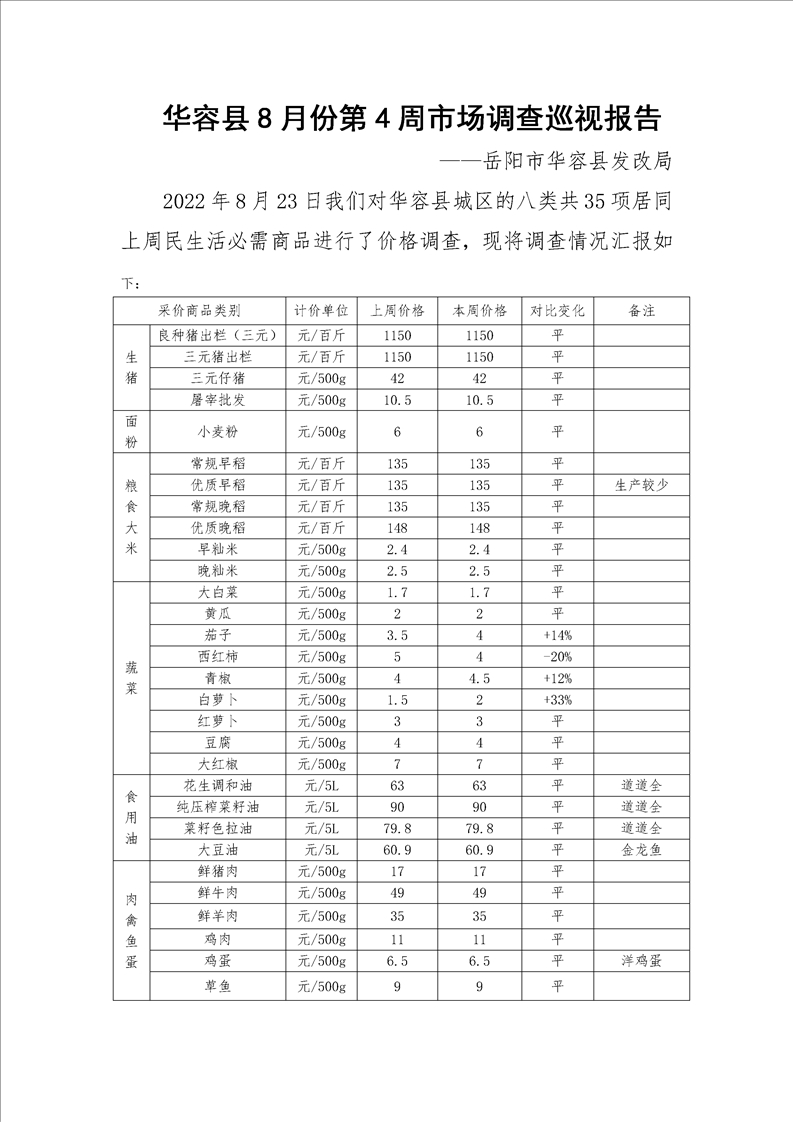 华容县2022年8月份第4周市场调查巡视报告