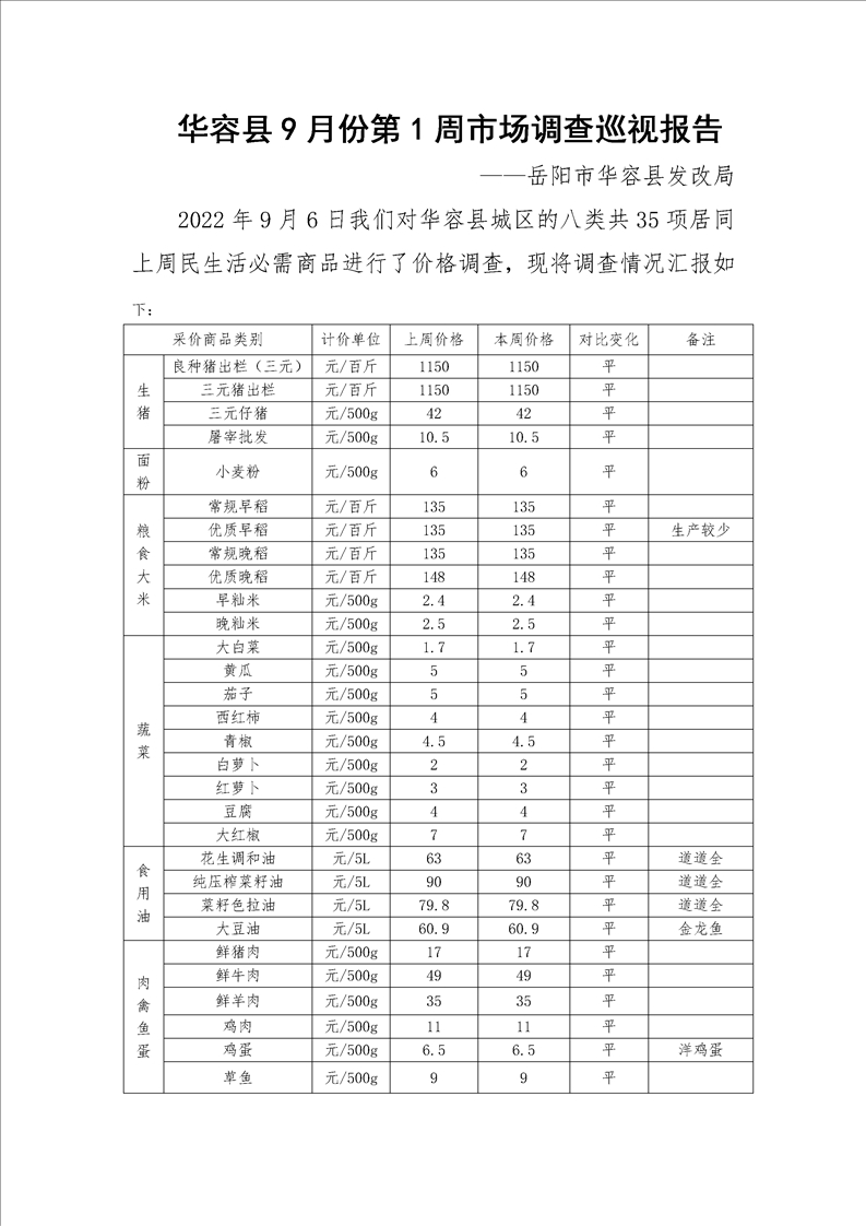 华容县2022年9月份第1周市场调查巡视报告