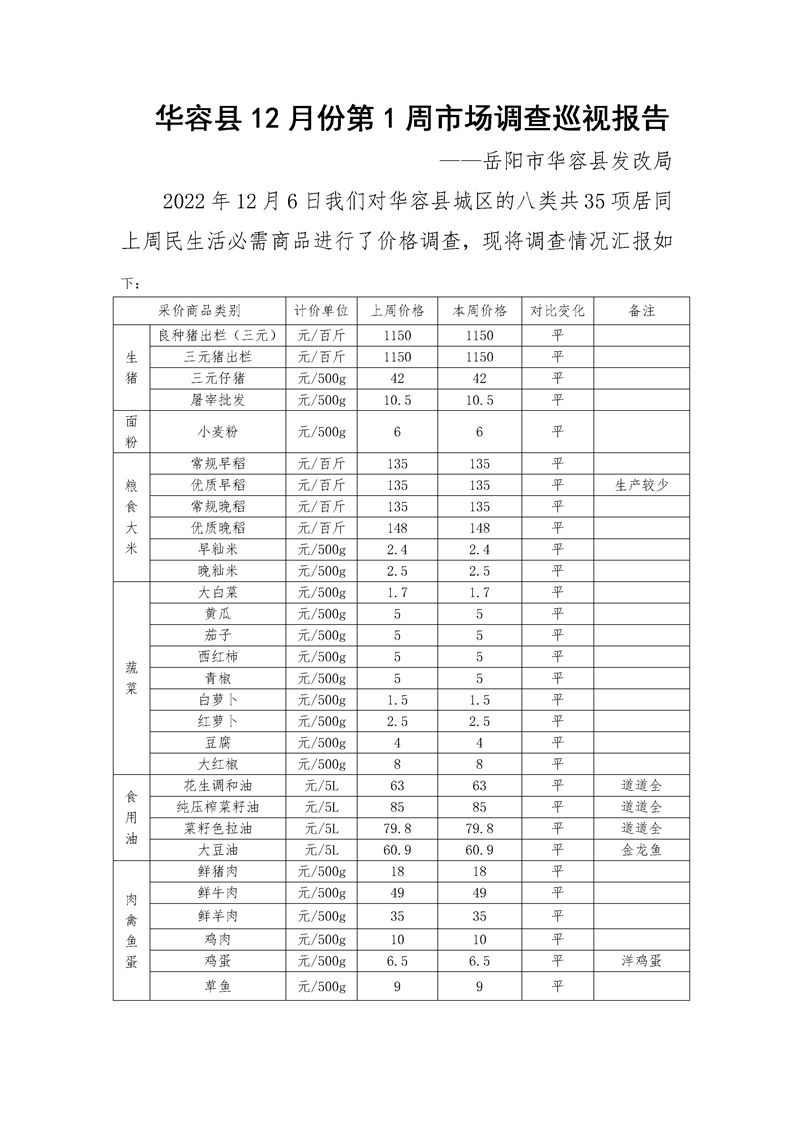 华容县2022年12月份第1周市场调查巡视报告