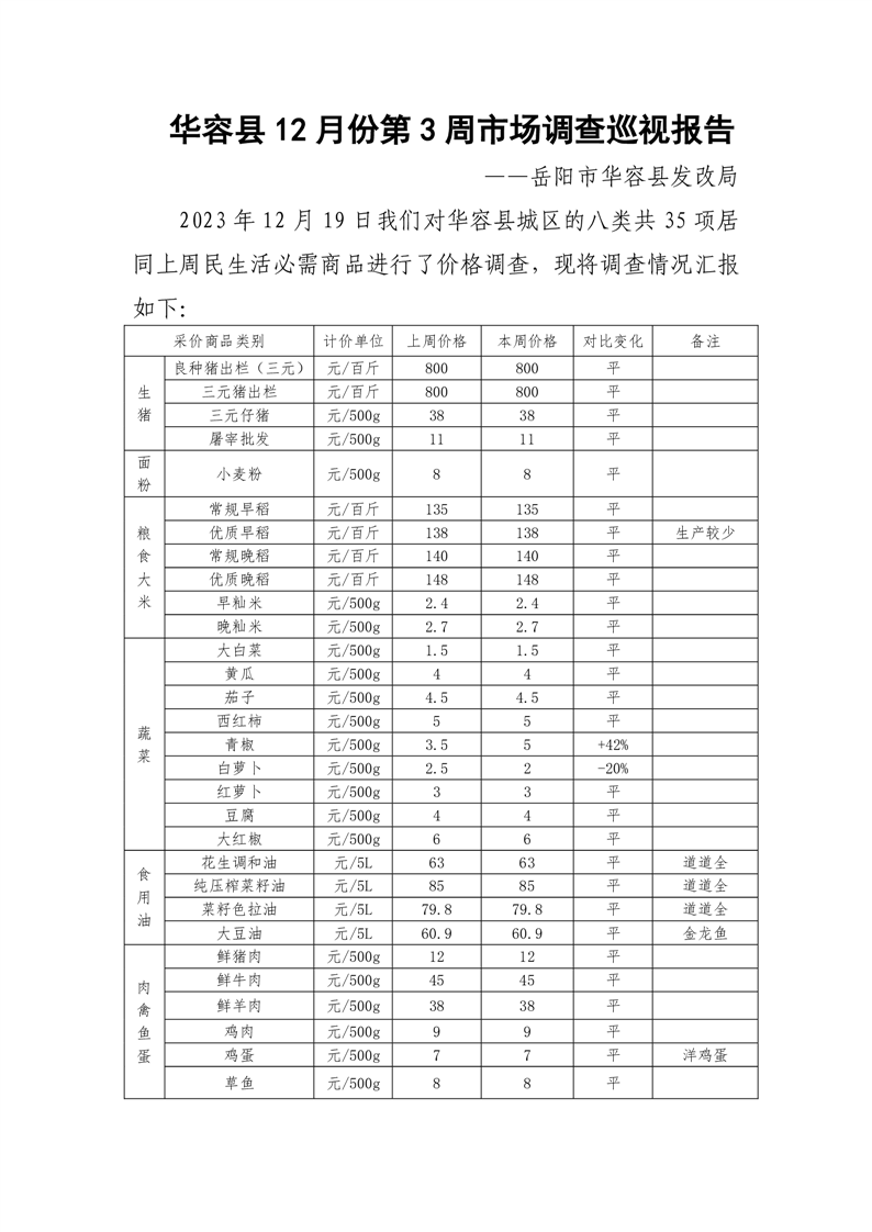 华容县12月份第3周市场调查巡视报告