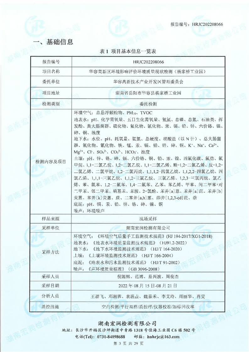 2022年华容高新区环境质量监测 (杨家桥工业园)