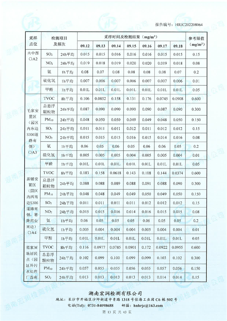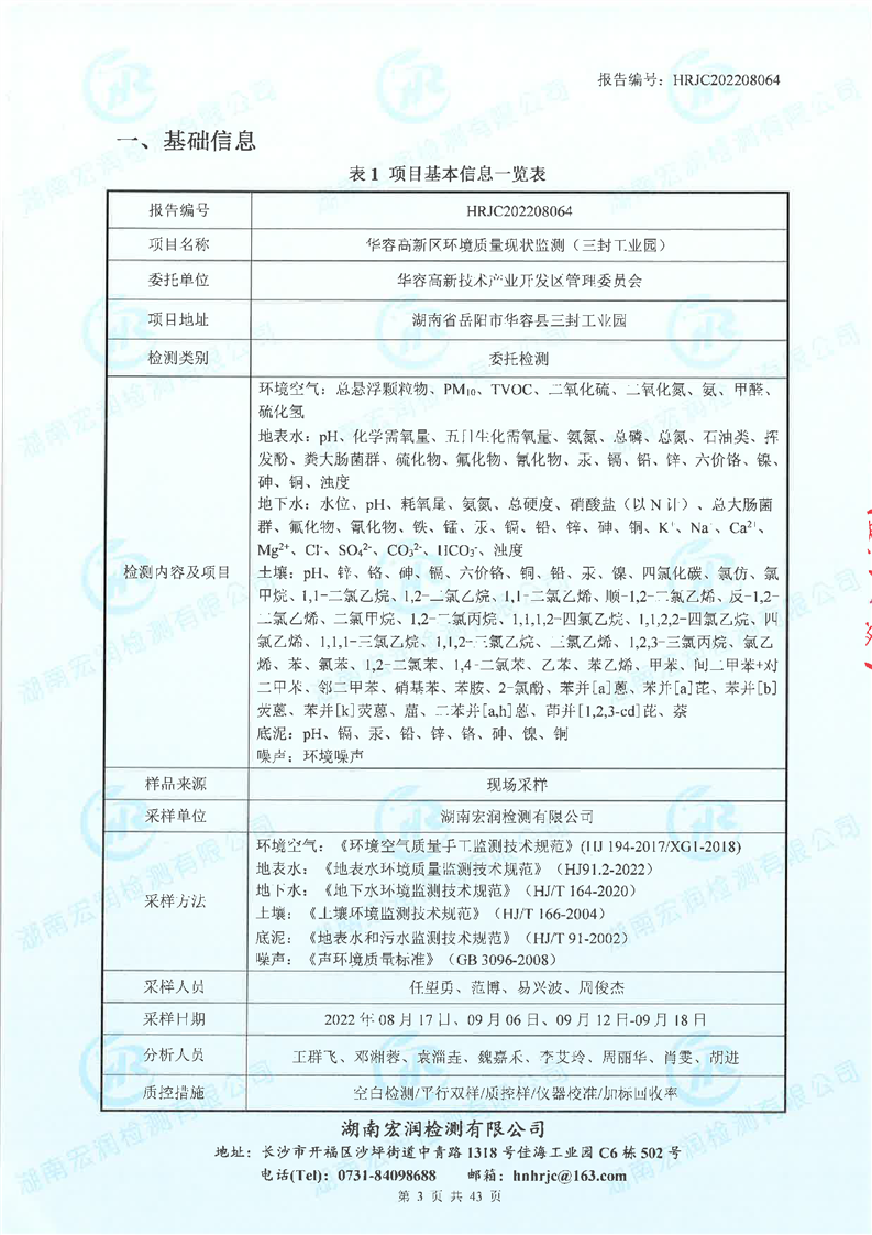 2022年华容高新区环境质量监测 (三封工业园)