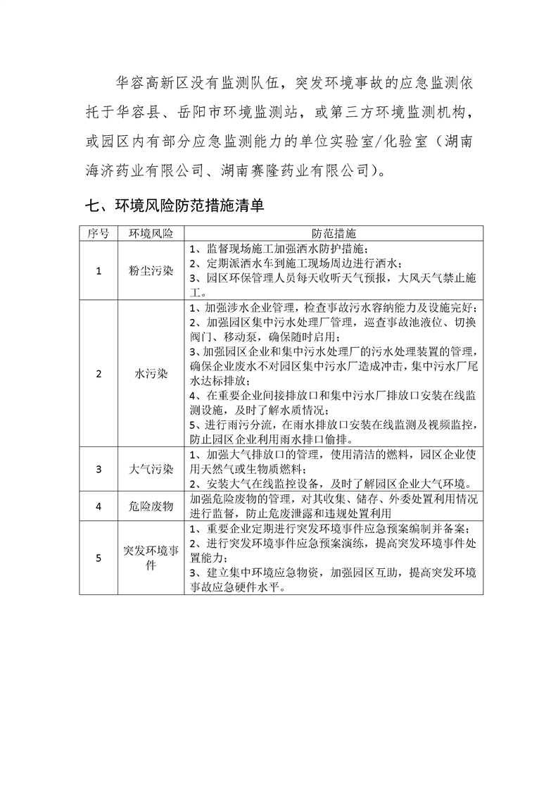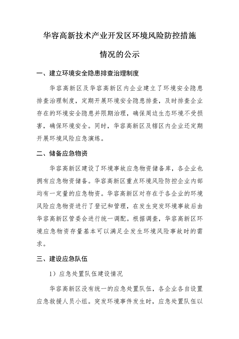 华容高新技术产业开发区环境风险防控措施情况的公示