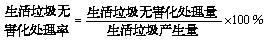 生活垃圾无害化处理率 指报告期生活垃圾无害化处理量与生活垃圾产生量的比率。在统计上,由于生活垃圾产生量不易取得,可用清运量代替。计算公式为: