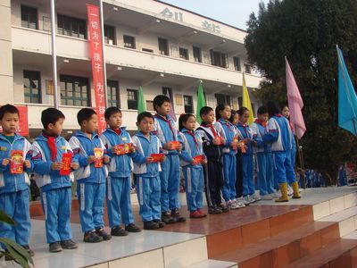 “阳光爱心社”对十四名家境贫困但品学兼优的学生颁发奖金应该说是本次开学典礼的又一亮点。我校“阳光爱心社”成立于2007年,共拥有“爱心天使”二百余名。这些“爱心天使”在学校德育处及班主任指导下,自行组织了“爱心义卖”,“爱心废品回收”等活动,并持之以恒,没有间断。两年来,共为特困生募得爱心基金三万余元。爱心基金资助贫困儿童的形式多样,既有对突发事件直接捐助,也有对困难儿童的节日慰问,更多的是采用奖励的形式对特困生进行资助。相信,受捐对象感受到的不是“施舍”,而是一股浓浓的爱意并将培育出一颗又一颗暖暖的爱心。