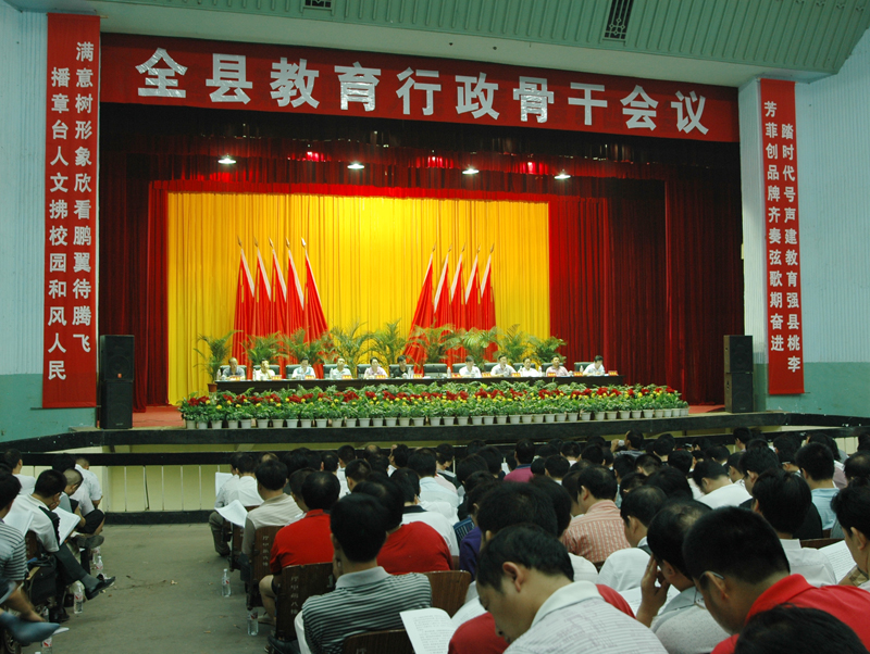 8月27日,全县教育行政骨干会议在县影剧院隆重举行。会上,副县长向阳作重要讲话,局长黎华平传达了全省推进教育强省工作会议重要精神并作工作报告,副局长周金华作了工作作风讲评,副局长刘奉良对全县中小学开学工作进行了认真部署。县政协副主席蔡宜生、县政府办工会主席包汉忠、全县各中小学校长、各乡镇中学校委会成员和本部校委会成员、各县直学校校委会成员、全体机关干部共600余人参加了会议。