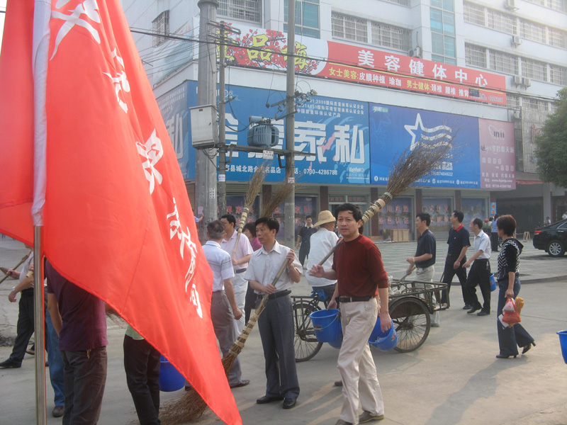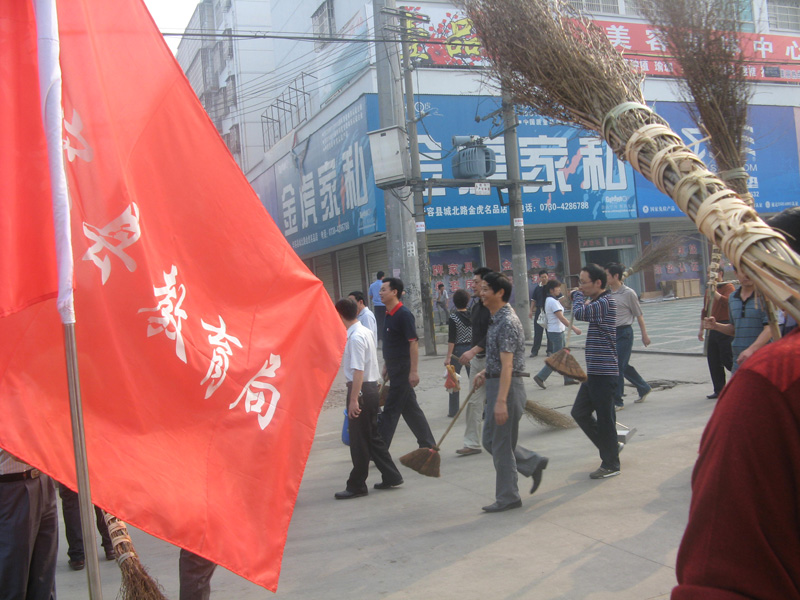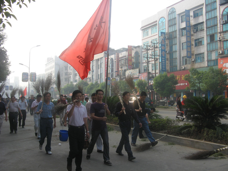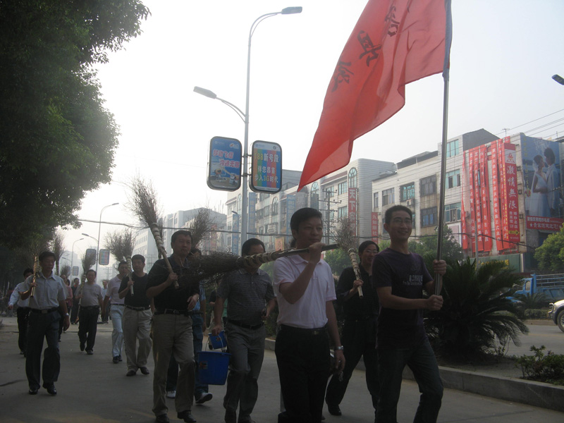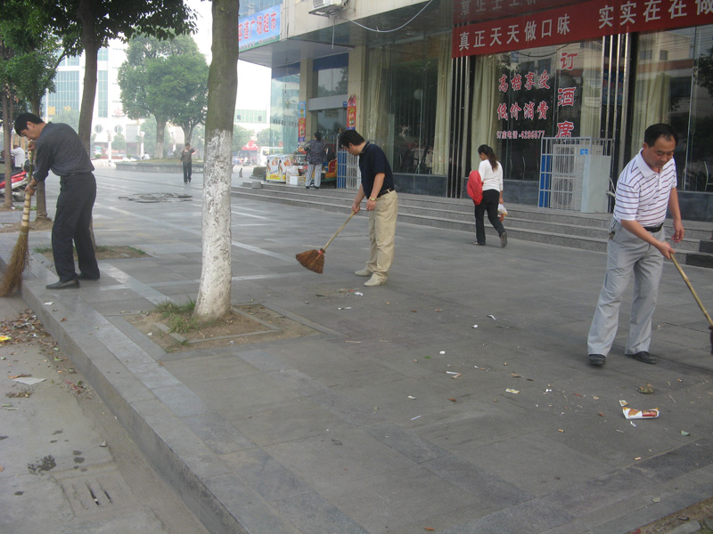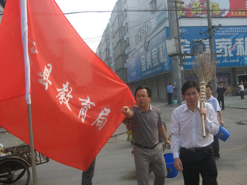 9月24日上午,县教育局在县委县政府的组织下,开展了“迎国庆60周年”义务大扫除活动。全体机关干部在局班子的带领下,对县城城北路阿里山茶楼至邮政局路段进行了全面清扫,获得了市民的一致称赞。