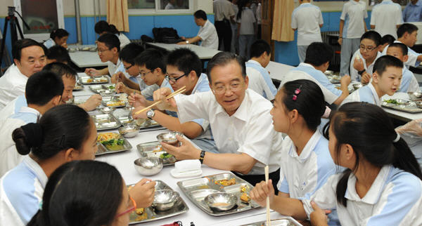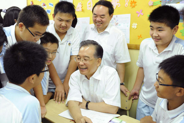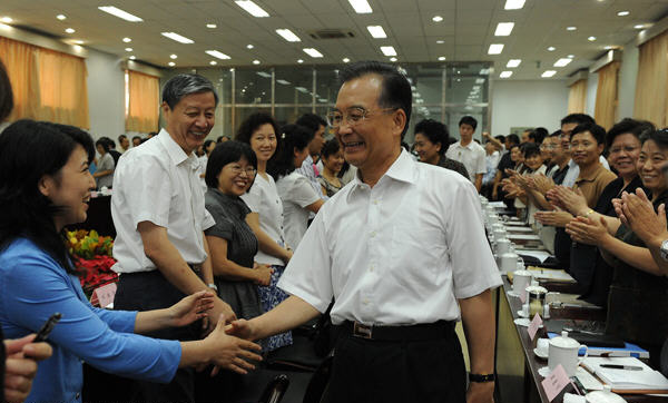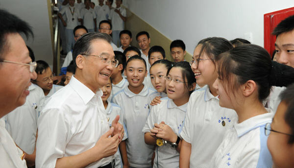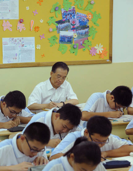 今年教师节前夕,温家宝总理到北京市第三十五中学看望师生。上午听了5节课,下午同北京市部分中小学教师座谈。