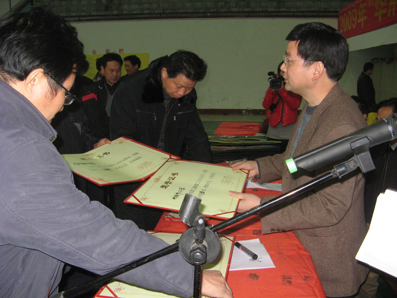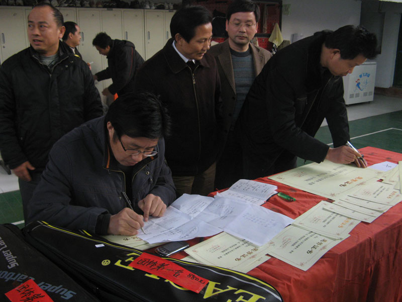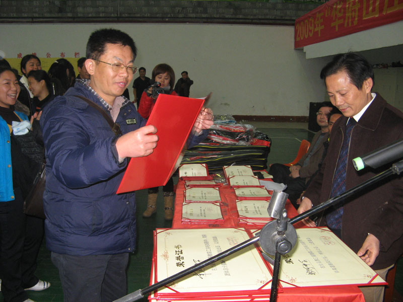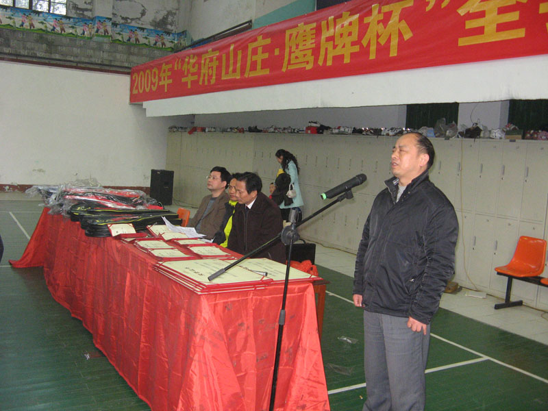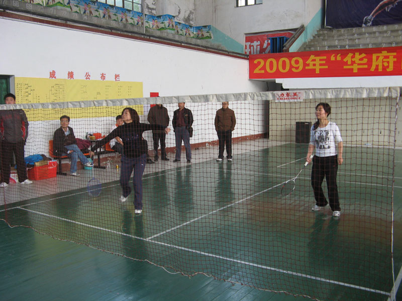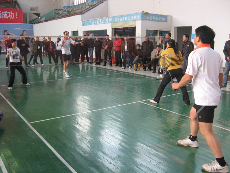 11月20日,2009年“华府山庄·鹰牌杯”全县教职工羽毛球大赛在县体育馆隆重举行。开幕式由工会主席戴永堂主持,党委副书记、副局长周金华致开幕词,副局长张兴中、缪中谟、刘奉良莅临赛场指导。此次大赛采用国际羽联最新竞赛规则,小局实行21分制,大局实行5局3胜制,比赛采用分组循环淘汰制,分组由大赛组委会与领队共同抽签确定。经过激烈角逐,获得团体奖前八名的单位是:江洲中学、县二中、城关中心小学、职业中专、操军中学、景港中学、万庾中学、幸福中学;获得男子单打前三名的是:操军中学 何为,职业中专 高仪,幸福中学 张谋;获得女子单打前三名的是:成教中心 王丹,万庾中学 秦琴,景港中学 范璇;获得体育道德风尚奖的单位是:新河中学,胜峰中学。