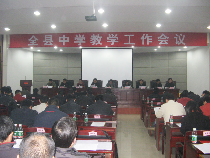12月7日,全县中学教学工作会议在县一中举行。会议共四个议程:副局长刘奉良总结了一年来全县教学工作的成绩与经验,分析了教学工作中存在的问题,部署了来年的教学工作;副局长周金华宣读了“2008——2009年度中学教学工作先进单位及先进个人”的表彰通报;县一中、县五中、新河中学、幸福中学作经验交流典型发言;局长黎华平就如何看待我县教育发展,怎么抓教育教学质量作了重要讲话。会议由副局长宋国立主持,他要求各单位要认真学习领会会议精神尤其是黎局长的讲话,并指出今后教学工作要“讲规律,重坚持,多激励”。局长室成员,机关各股室负责人,县直学校校长、主管教学工作的副校长、教务主任和各学科教研组长,各乡镇中学校长、本部副校长和业务副校长共300余人参加了会议。