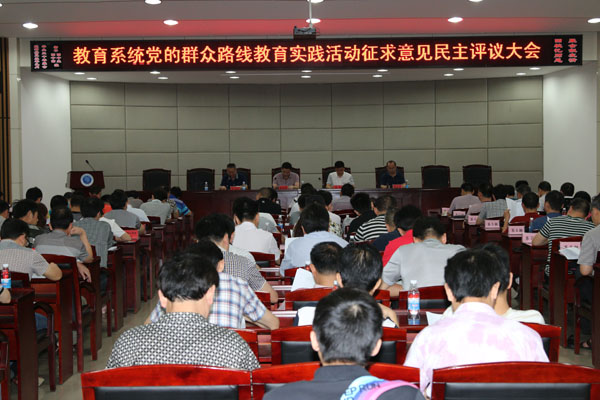 本次会议主要是对在“学习教育、听取意见”环节中,县委第十二督导组征集到的局党委班子和班子党员领导干部在“四风”等方面的意见进行民主评议。局长办公会成员、机关全体党员干部(含退线干部)、老干部代表,县一中、职业中专党组织书记、分管党务负责人,其它县直学校县管、局管干部;各乡镇中学(城关中心小学)校长、分管党务负责人以及教育系统两代表一委员等200多人参加本次民主评议。