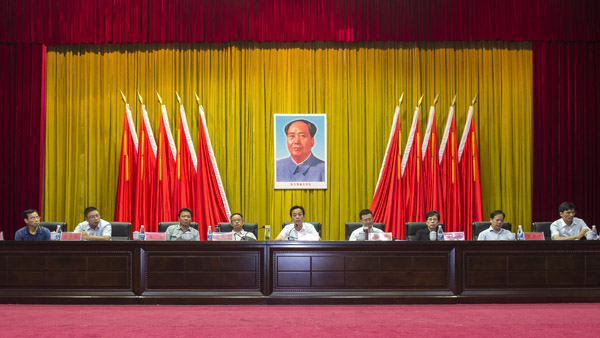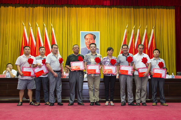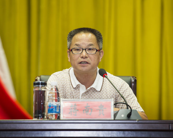 主席台就坐领导(左起):鲁明河、李学松、呙飞、蒋南贵、汪涛、喻文、胡秋香、张兴中、刘振强