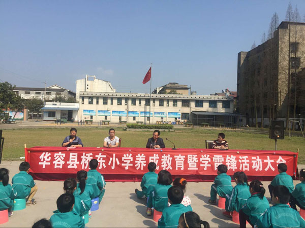 4日下午,桥东小学举行“学生行为习惯养成教育暨学雷锋活动”启动仪式。全校400多名学生面向国旗宣誓,争做文雅好少年。同时,学校还组织全体师生开展了“学雷锋,树新风”签名活动。