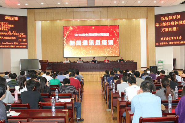 5月18日,全县教育体育系统新闻通讯员培训班在教师进修学校多功能报告厅隆重举行。各乡镇中学(注滋口中心小学)分管业务的副校长、县直学校办公室主任、部分机关干部以及各相关学校新闻通讯员骨干共计120余人参加了本次培训。市教育体育局办公室副主任胡义兵出席开班仪式,并宣读了奖励通报;局党委副书记、纪委书记华志军作重要讲话。