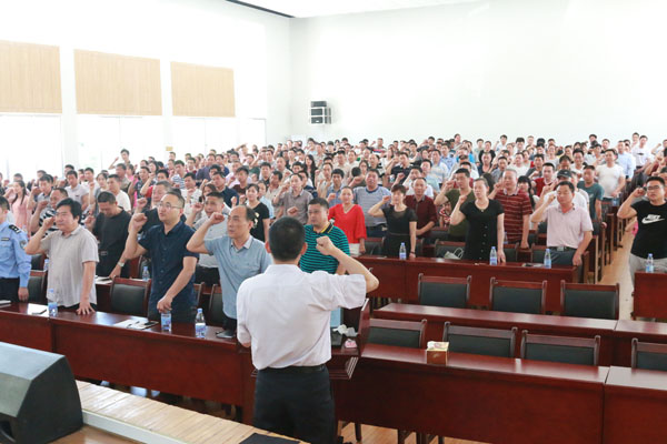 会上,省交警总队秩序支队副支队长梁少雍以《规则和责任——别让校车悲剧再上演》为题,从一组组触目惊心的数据和一起起令人痛心疾首的校车安全事故入手,对全体与会人员进行了校车安全知识专业培训,并同大家一道起立宣誓,承诺“遵守交通规则,做安全文明驾驶员”。县交警大队副大队长周忠波对我县发生的“4.28”校车违法案例进行了通报。