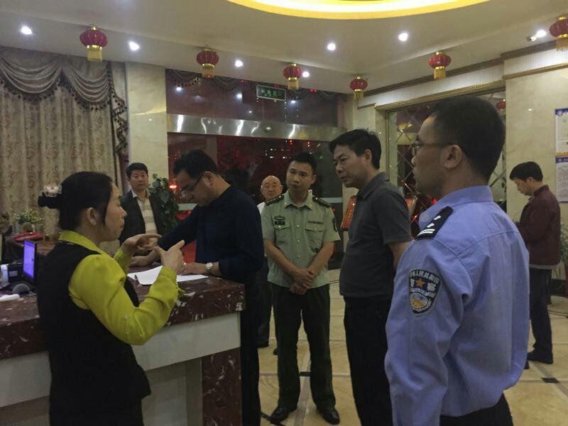 6月5日晚上9时许,县人民政府副县长范文科带领县教体局、公安局、食品药品工商质量监督管理局、消防大队等相关部门单位负责人,先后来到皇华宾馆、景豪大酒店等高考、学考考生食宿点进行集中突击检查。