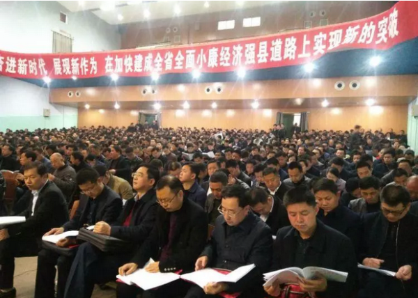 3月1日上午8时,我县2018年县乡村三级干部会议在县影剧院举行。
