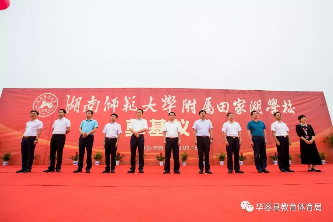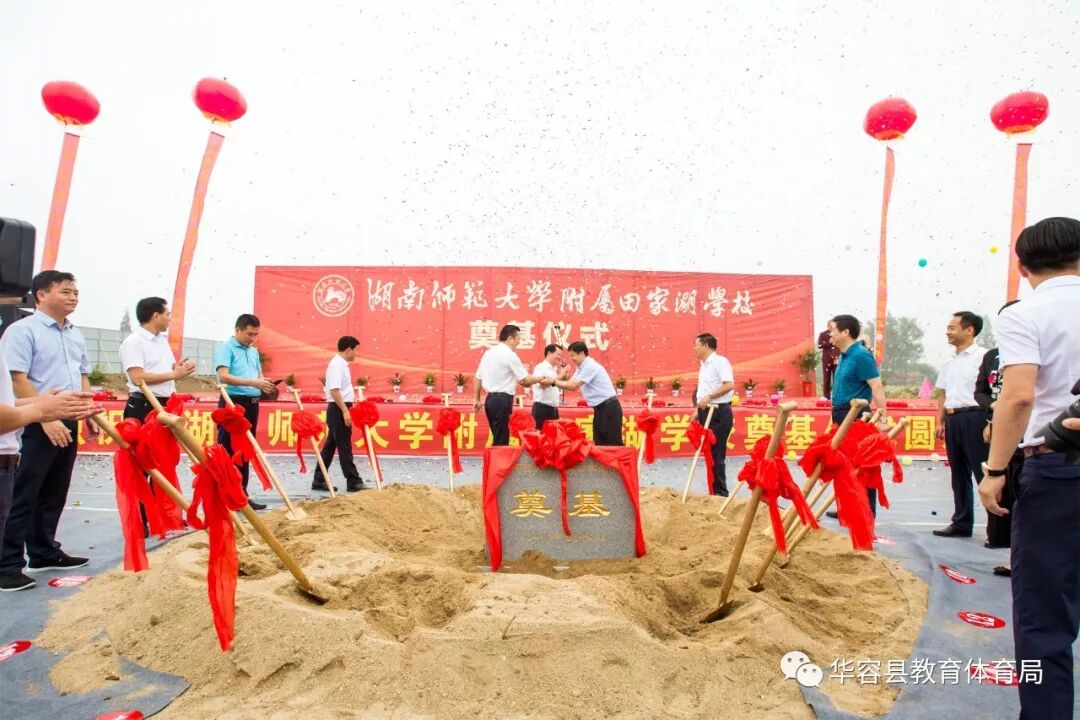 九月的艳阳孕育着秋的收获,辛勤的汗水浇灌出梦的硕果。9月18日,湖南师范大学附属田家湖学校项目举行开工暨奠基仪式。湖南师范大学附校办主任龚民,湖南师范大学附中校长谢永红,华容县委书记刘铁健,县委副书记、县长陶伟军,县委副书记钱丹青,县委常委、常务副县长黎朝晖,县委常委、政法委书记谢志辉,县委常委、县委办主任胡军,副县长范文科,县政协副主席文丽萍参加奠基仪式。