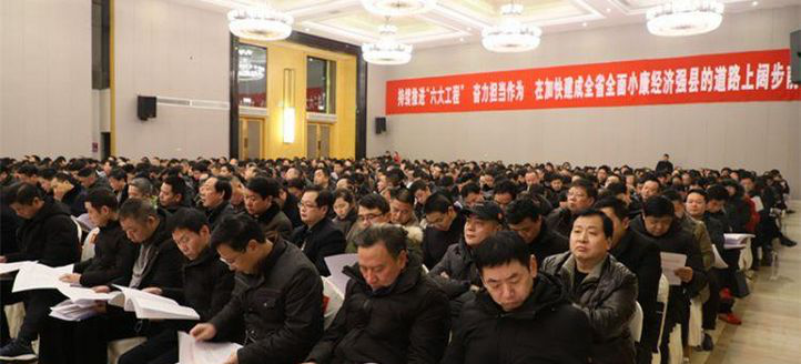 本次会议的主题是:表彰2018年度工作先进单位和个人,部署强调2019年度工作重点,动员全县上下特别是各级领导干部坚持以习近平新时代中国特色社会主义思想为指导,紧紧围绕继续打好“三大攻坚战”,强力推动乡村振兴,深入实施创新引领开放崛起战略,扎实践行“一三五”基本思路,持续推进“六大工程”,奋力担当作为,在加快建成全省全面小康经济强县的道路上阔步前进。