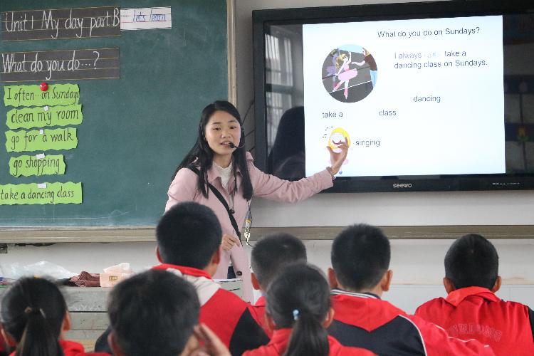 城关中心小学胡俊芳老师以其流利的英语口语、亲切的教态、独特的教学设计,不仅成功地吸引住了听课的学生,连听课的评委和老师也投入课堂,不时发出愉快的笑声。