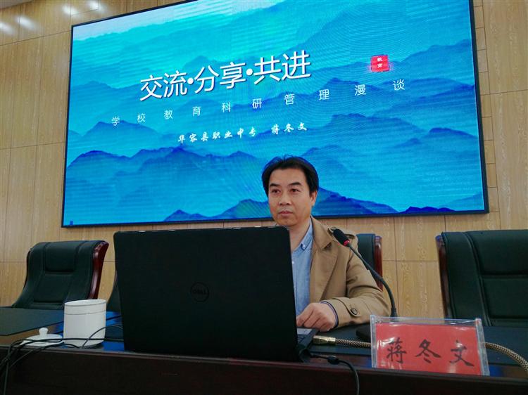 正高级教师、省特级教师、职业中专党总支副书记蒋冬文以《学校教育科研管理》为题作经验报告。