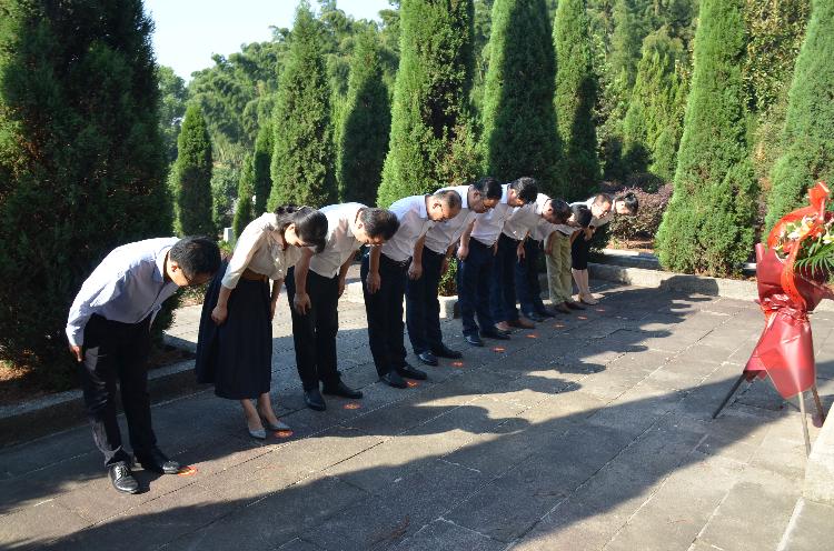 在烈士陵园将军墓前,局党委书记、局长龚成明带领班子成员向何长工纪念像敬献花篮、整理缎带、鞠躬行礼。随后,全体班子成员又前往何长工纪念馆,参观何长工同志光辉一生主题展览。