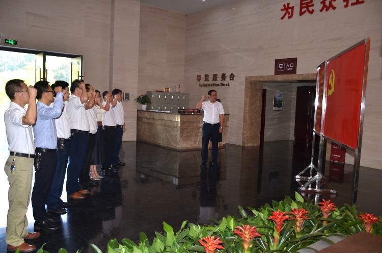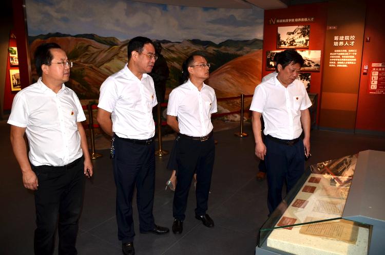 在纪念馆里,班子成员集体面对党旗,重温入党誓词。通过讲解员的介绍,大家共同追忆何长工等老一辈革命家浴血奋战、意义非凡的武装革命历程,一件件文物、一份份史料、一张张照片,展示出他们为民族独立、人民解放所作出的不朽功勋和卓越贡献。