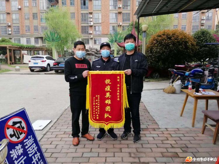 “非常感谢教体局的机关干部在关键时候,日夜守护我们的小区和我们的居民。”3月22日,绿景现代城第三期全体业主和宏安物业公司为驻守小区的华容县教体局送来一面印有“抗疫英雄团队”的锦旗,感谢值守人员在疫情防控期间的辛勤付出。